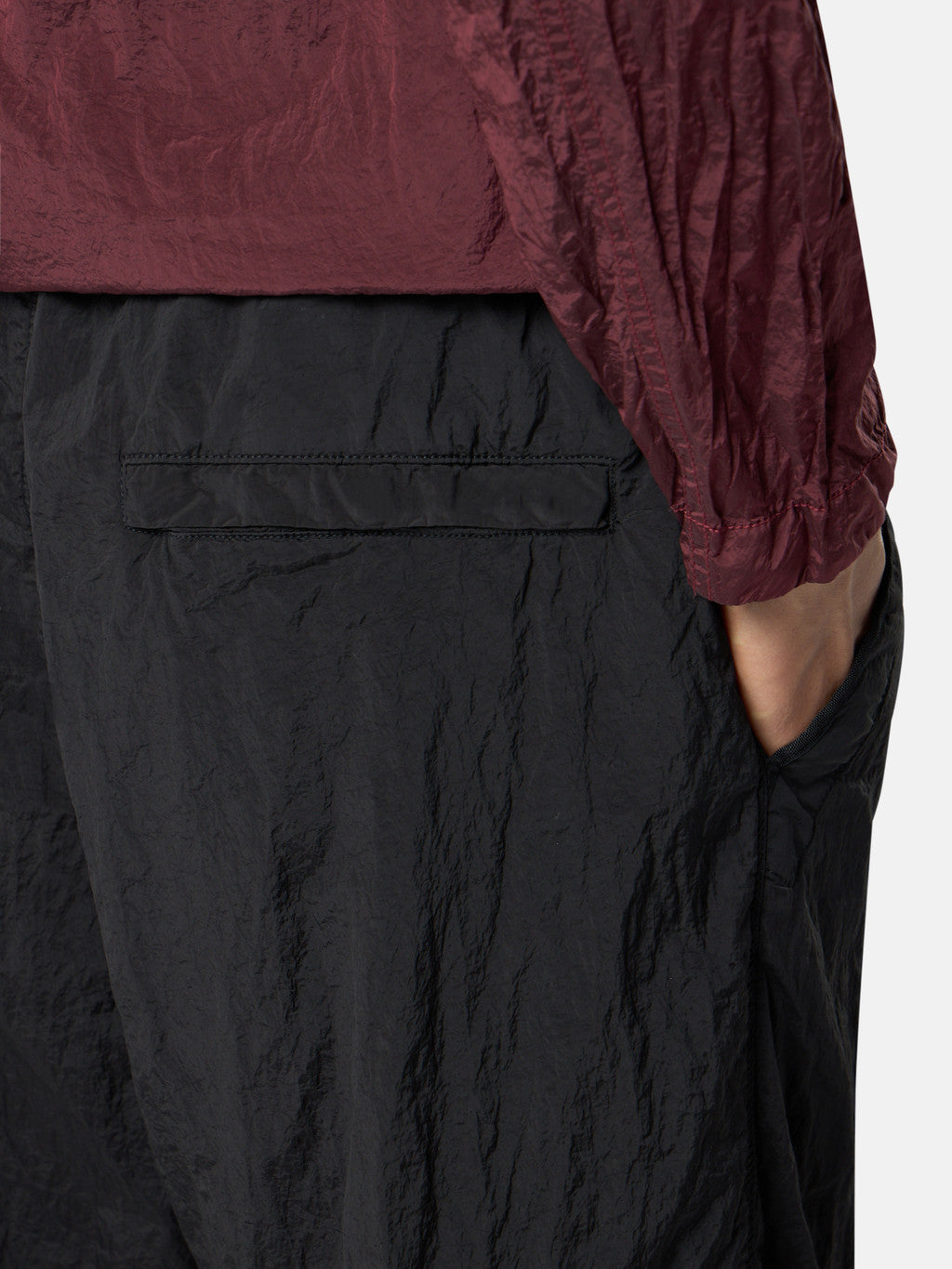 Jogger trousers in Stone Island's iridescent Nylon Metal fabric. The evolution of this iconic fabric sees the use of ECONYL regenerated yarns: the life ended nylon, pre- and post-consumer, is recycled with a complex depolymerization process to create this fibre that features the same intrinsic characteristics of nylon from fossil raw material. Garment dyed with a double colour recipe. Nylon mesh lining.