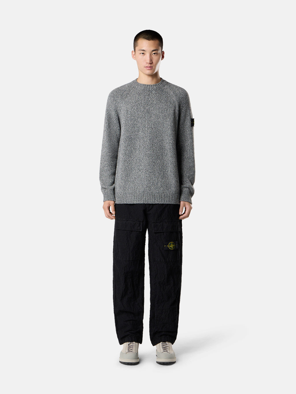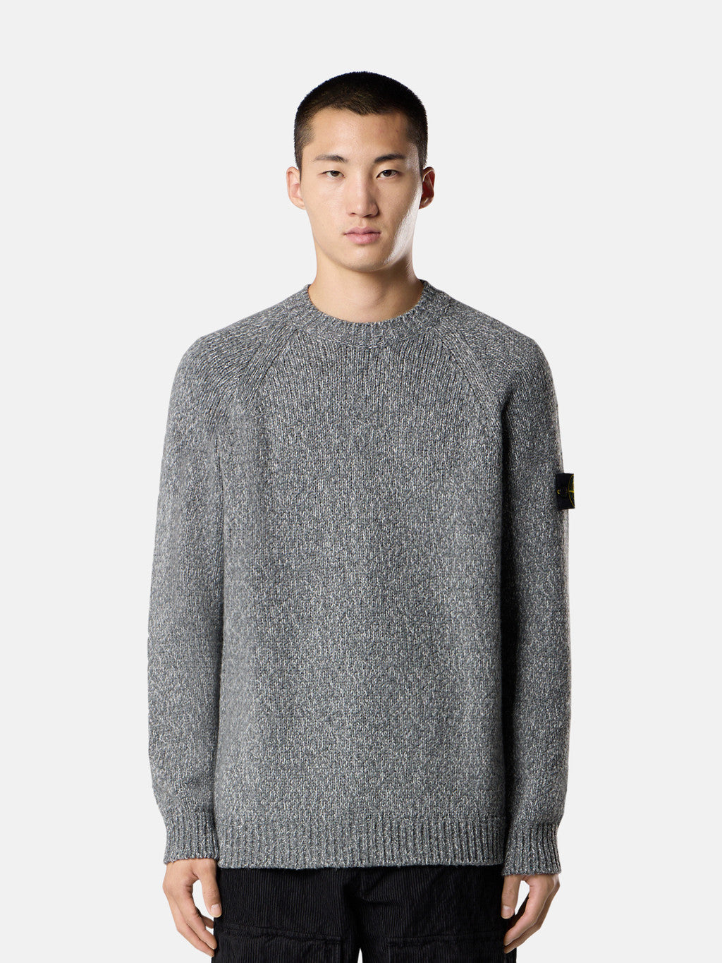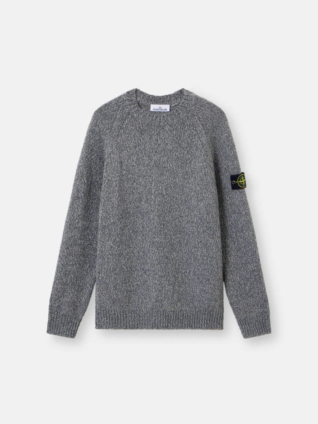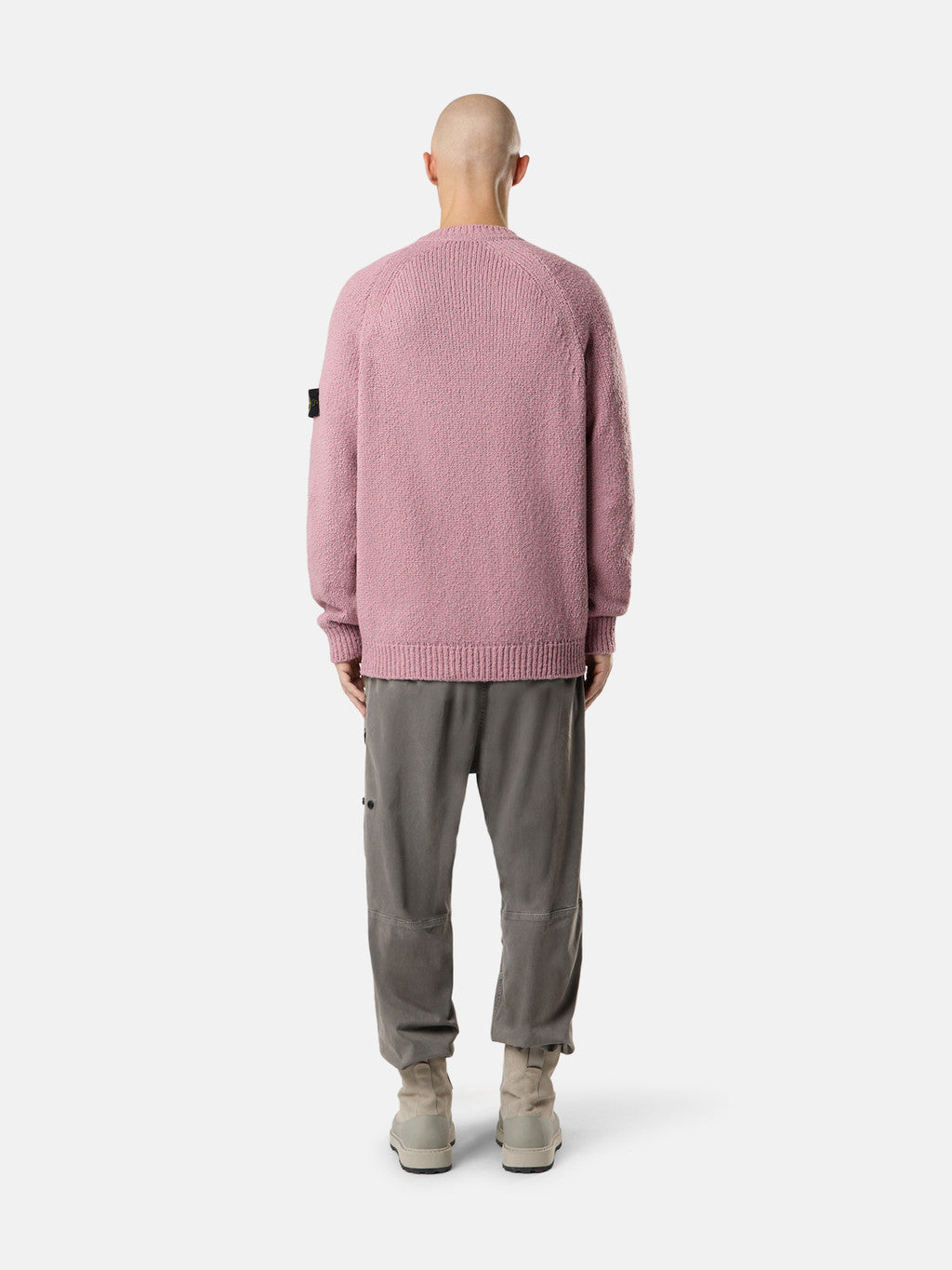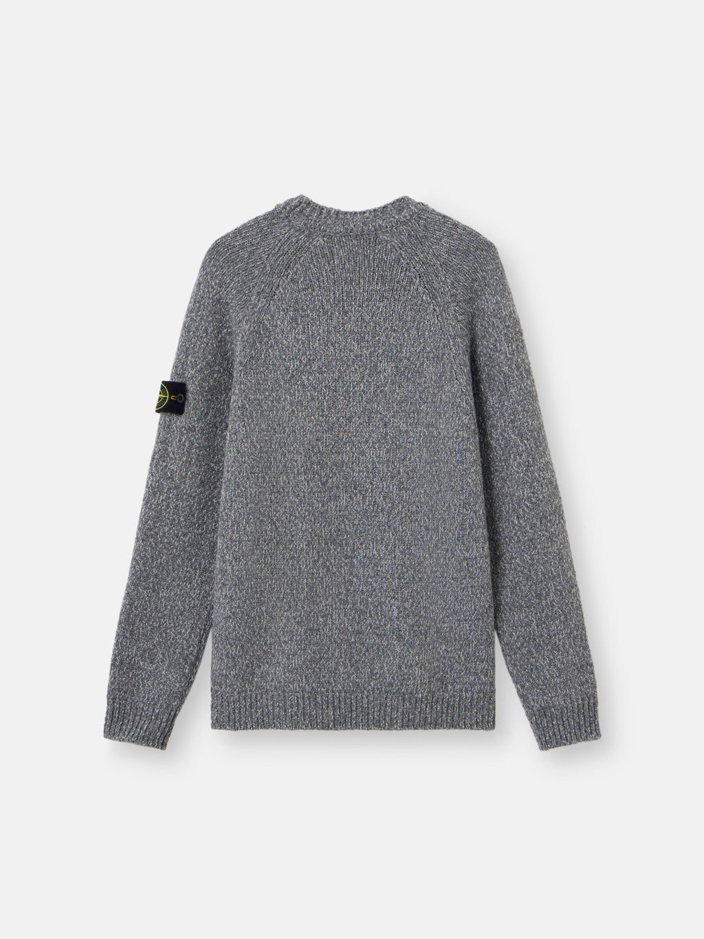 Knit crewneck jumper in mouline wool and nylon. Stocking stitch. Gauge 3.