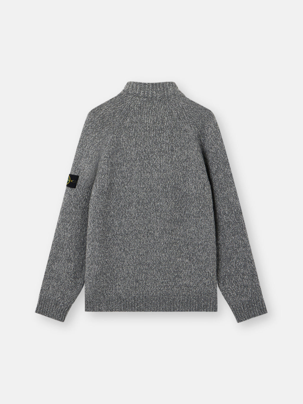 Knit zip-up jumper in mouline wool and nylon. Stocking stitch. Gauge 3.