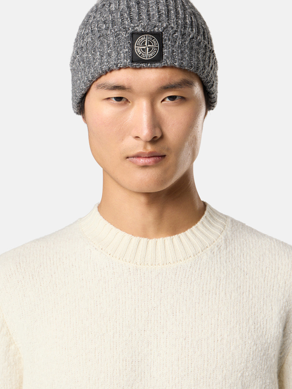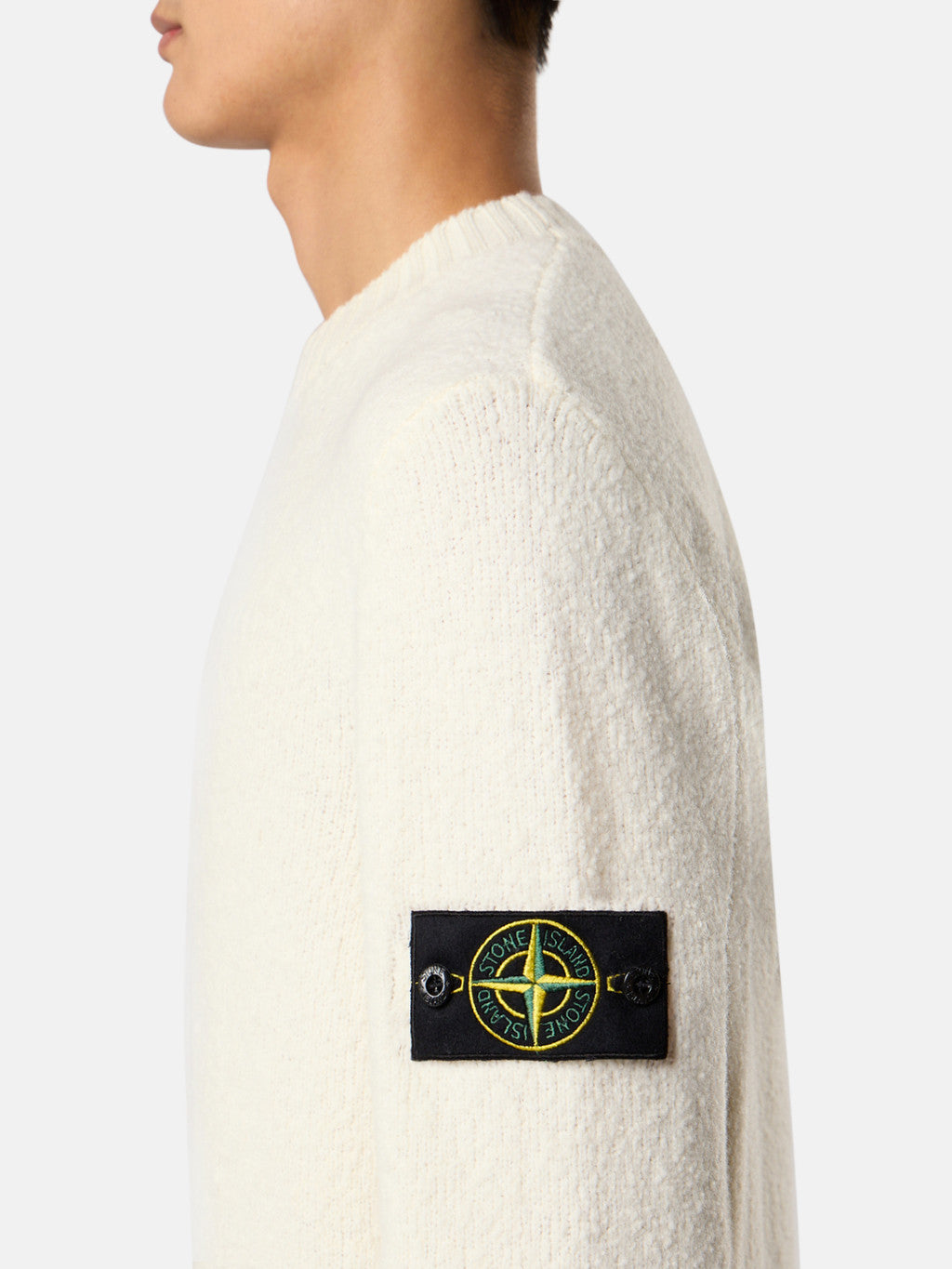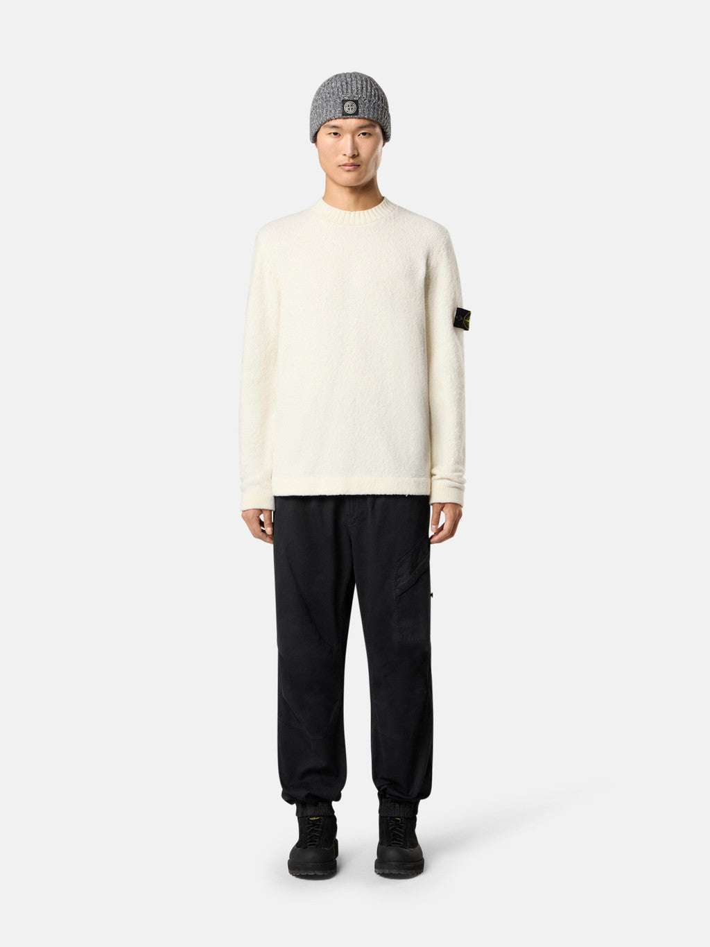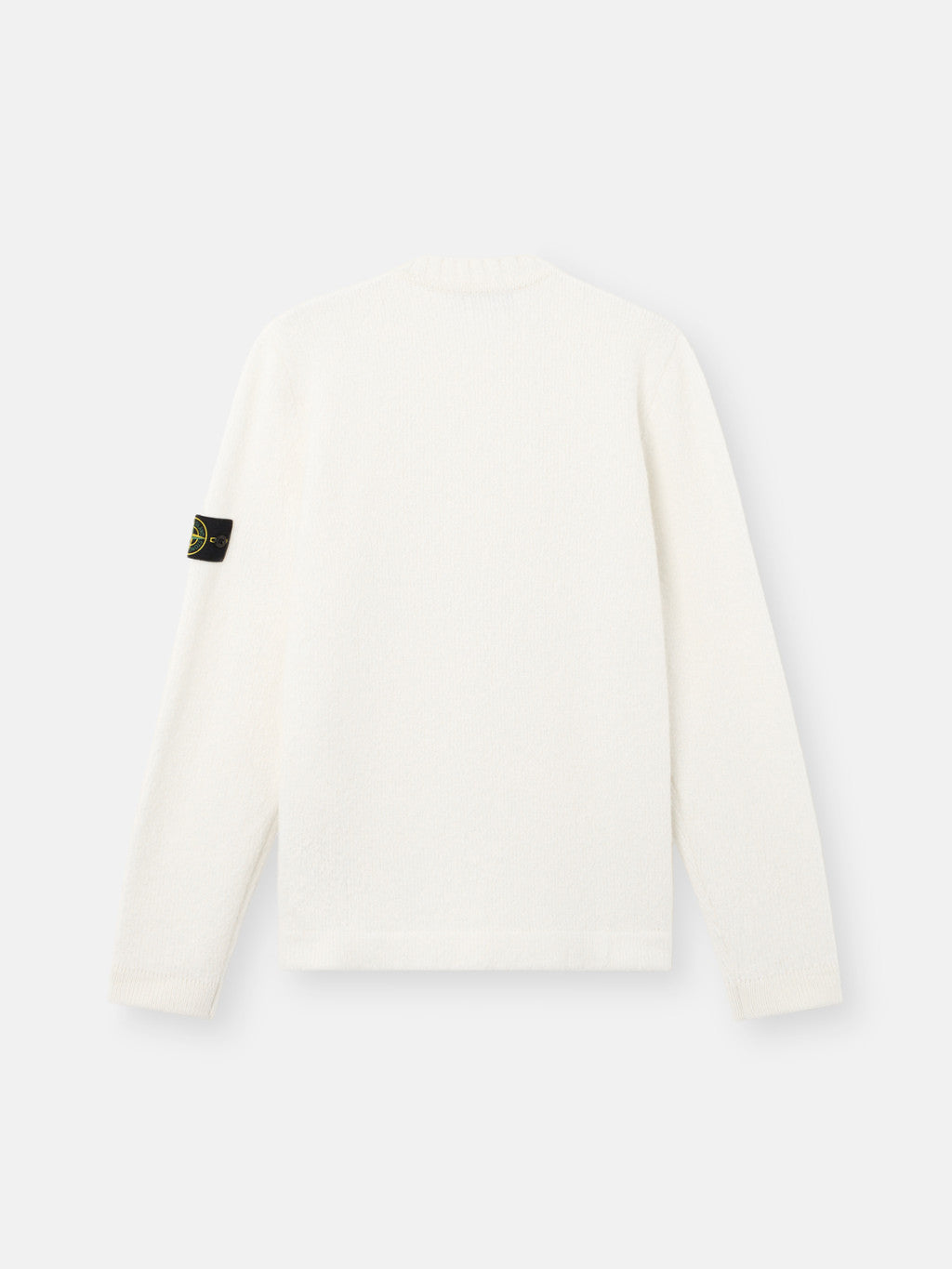 Knit crewneck jumper in wool-nylon blend with a brushed texture. Stocking stitch. Gauge 5.
