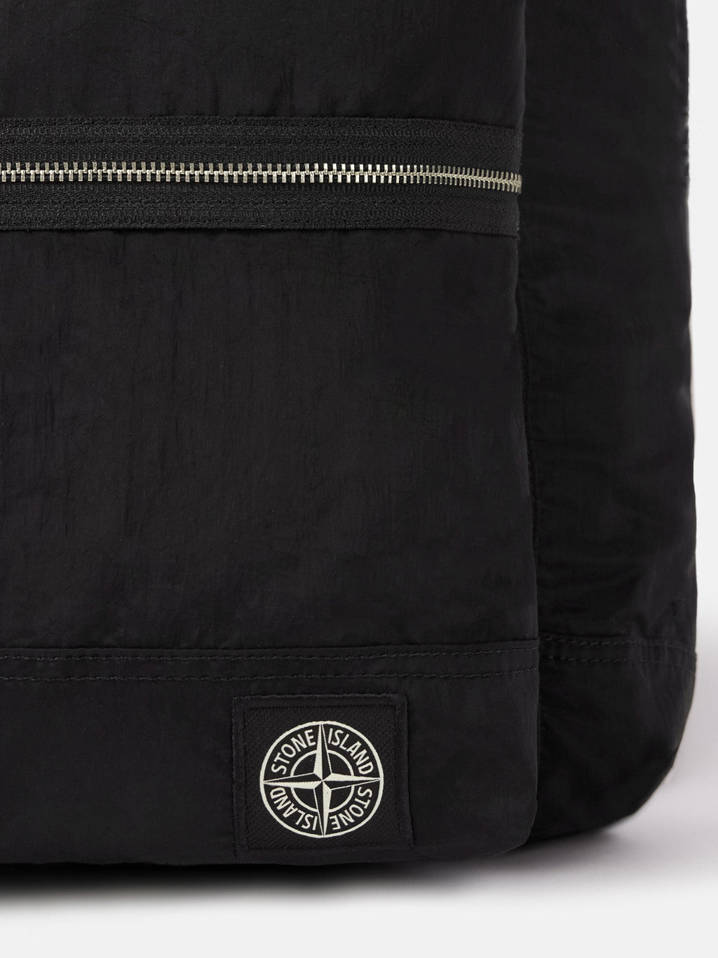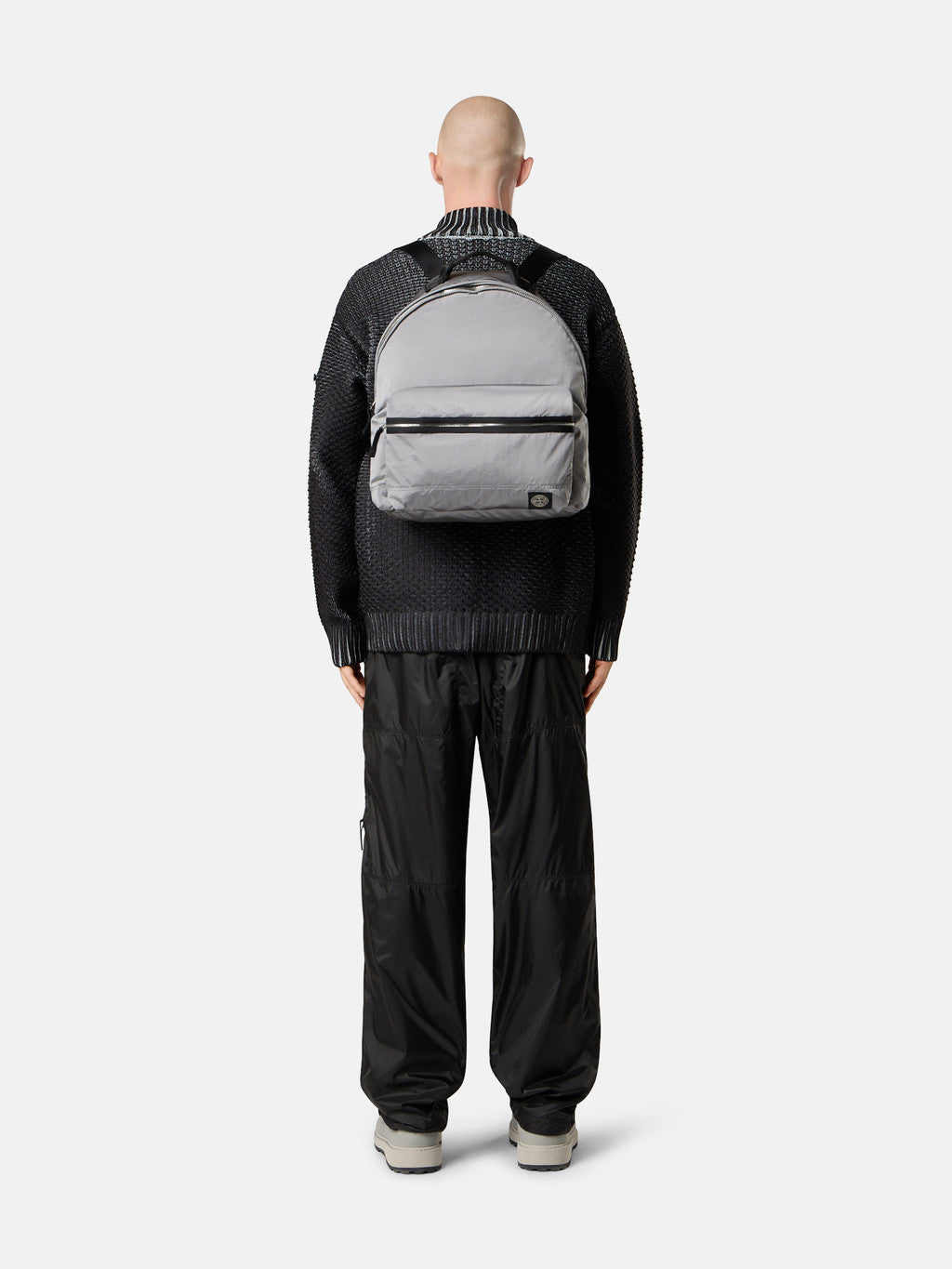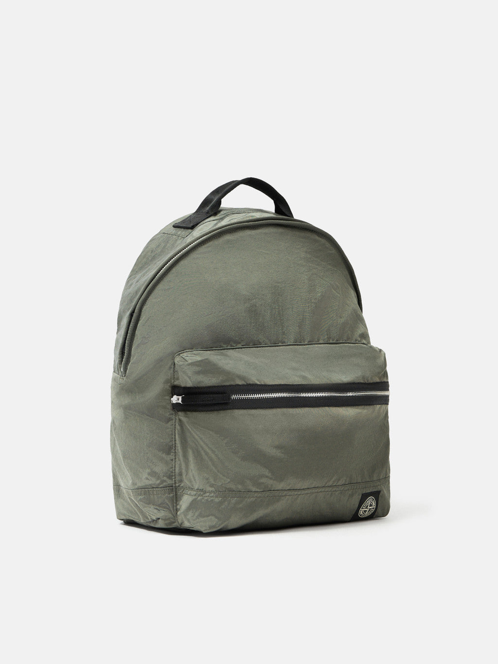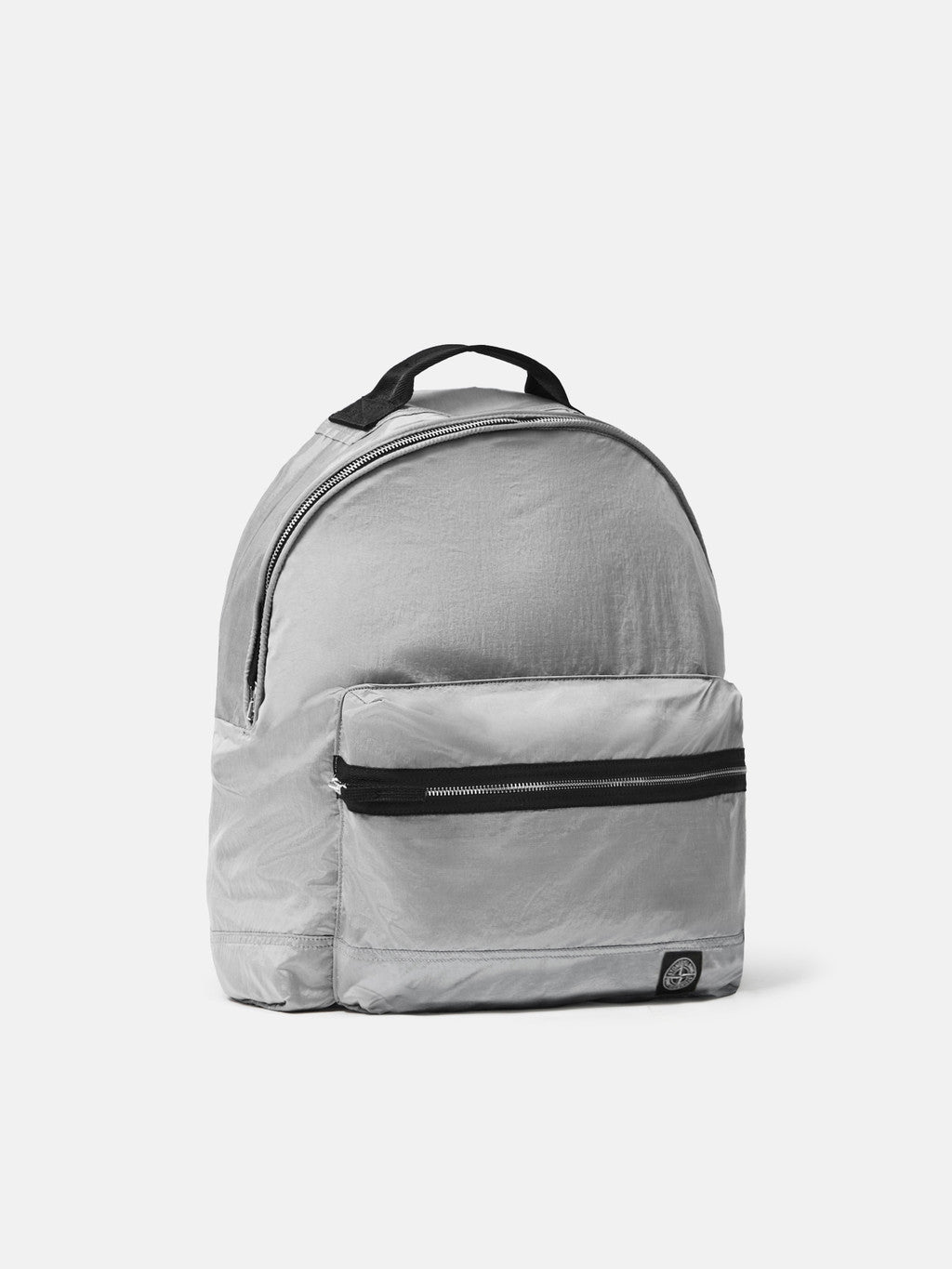 Backpack in Stone Island's iridescent Nylon Metal fabric with polyurethane coating. The evolution of this iconic fabric sees the use of ECONYL regenerated yarns: the life ended nylon, pre- and post-consumer, is recycled with a complex depolymerization process to create this fibre that features the same intrinsic characteristics of nylon from fossil raw material.