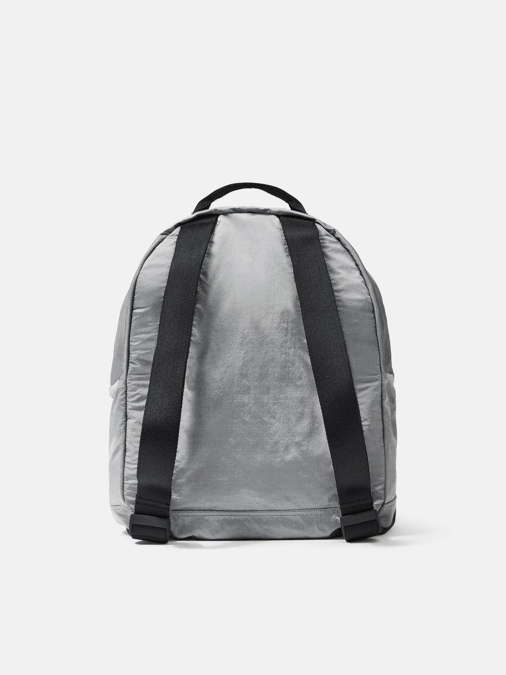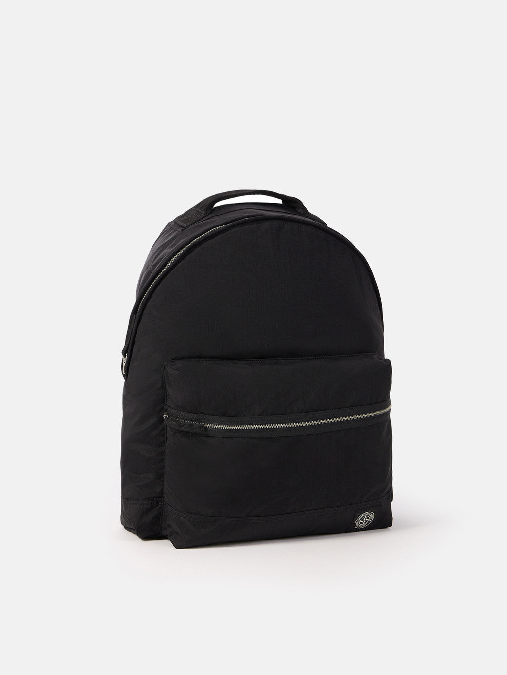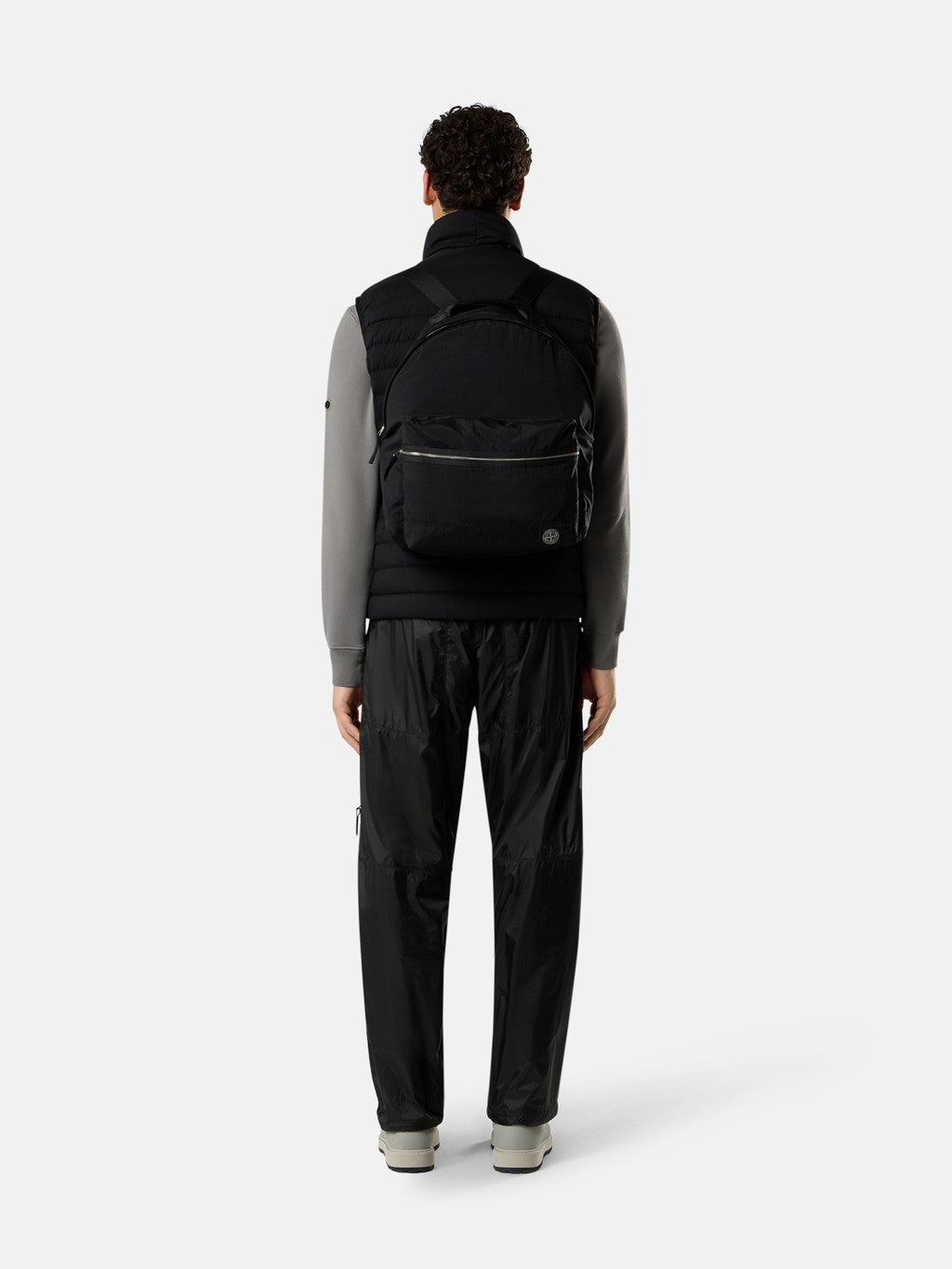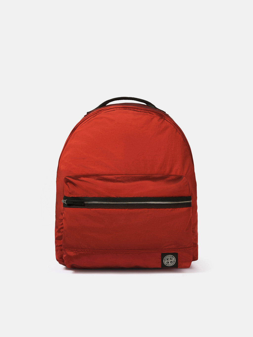 Backpack in Stone Island's iridescent Nylon Metal fabric with polyurethane coating. The evolution of this iconic fabric sees the use of ECONYL regenerated yarns: the life ended nylon, pre- and post-consumer, is recycled with a complex depolymerization process to create this fibre that features the same intrinsic characteristics of nylon from fossil raw material.