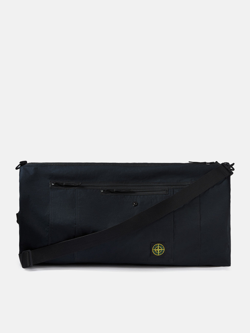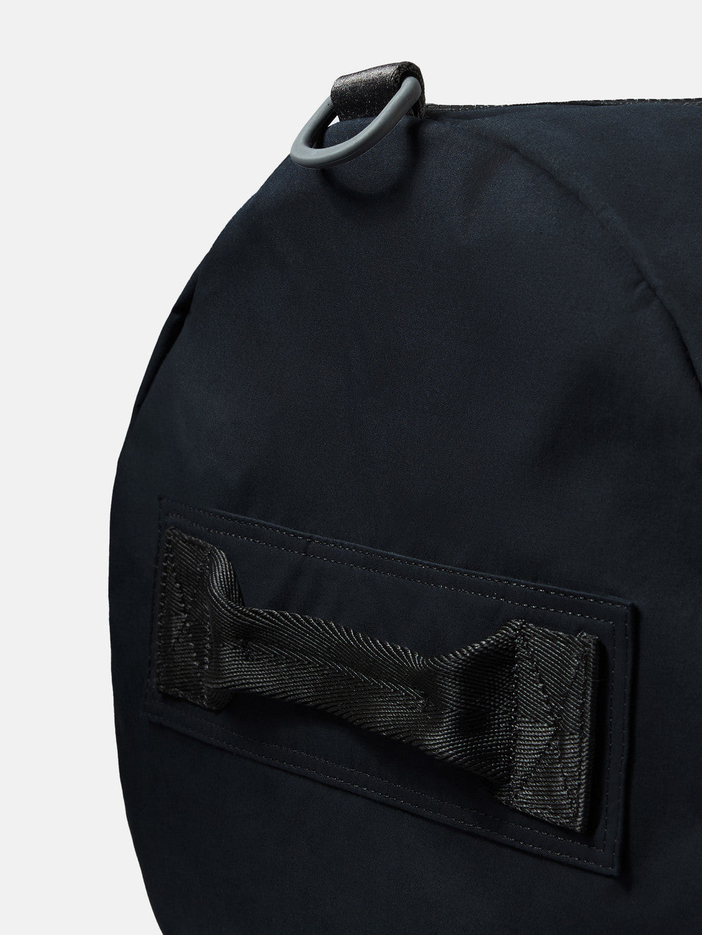 Duffle bag made from a 50Ne pure cotton poplin, laminated to an aluminium foil and protected by a second layer of the same poplin.