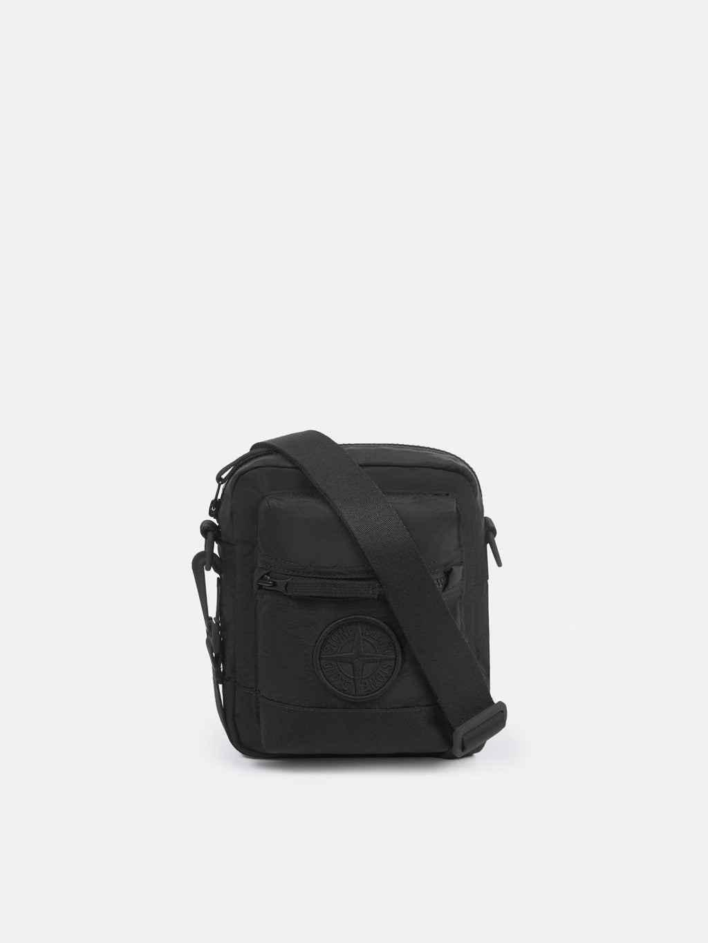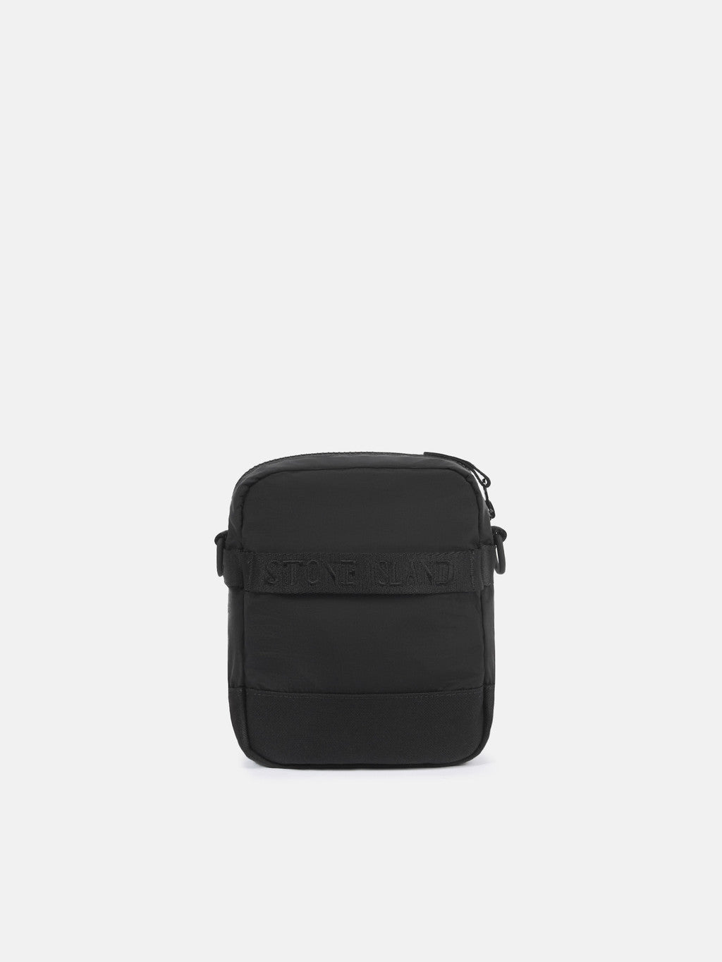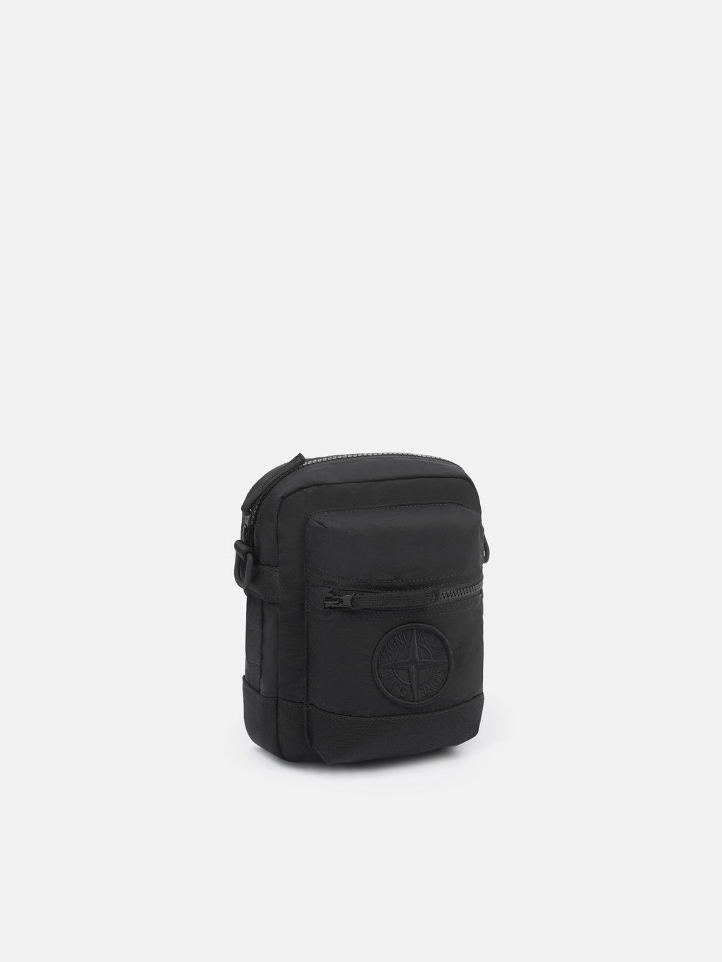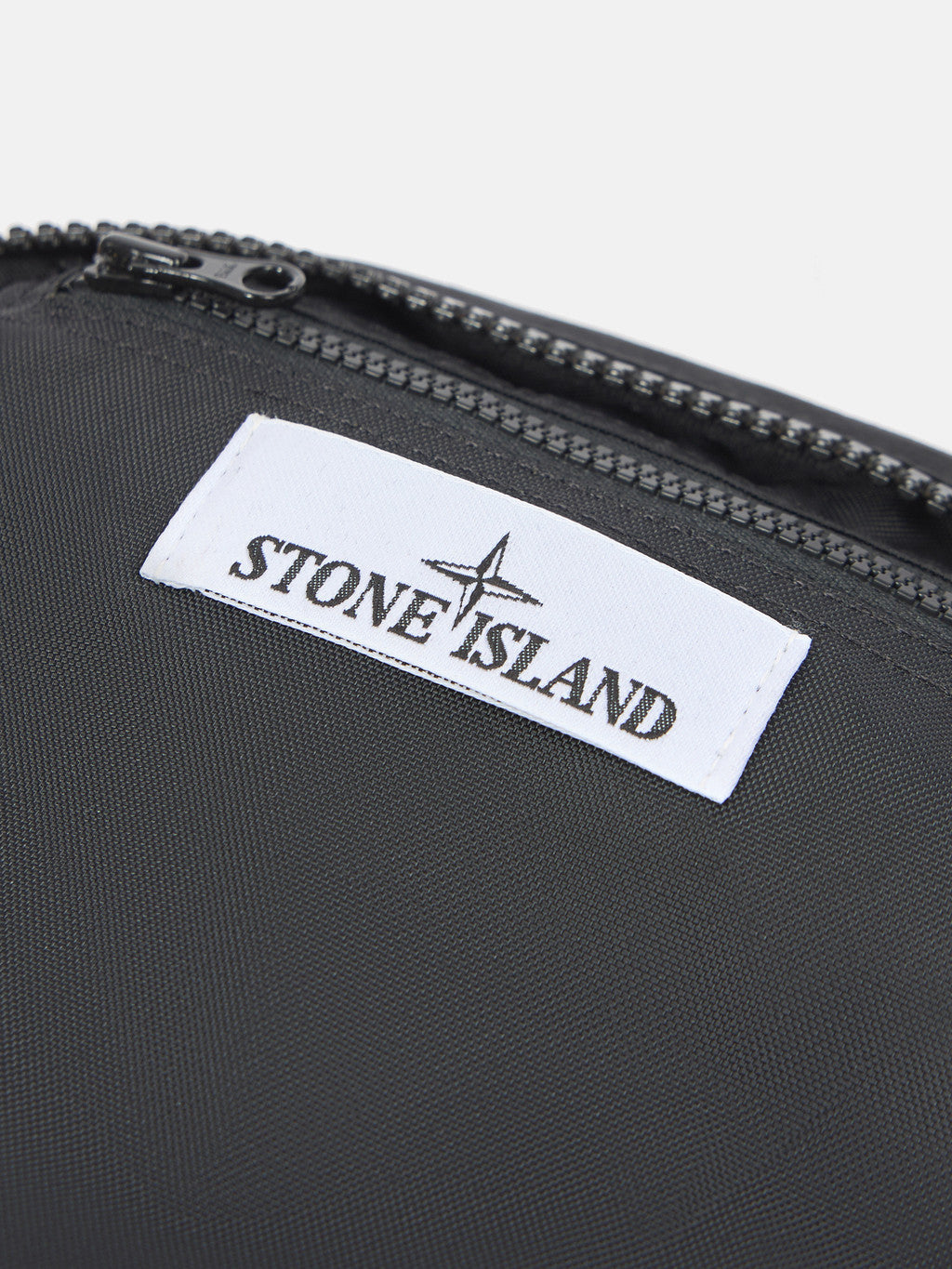 Pouch bag made in the responsible Stone Island iridescent Nylon Metal fabric. The evolution of this iconic fabric sees the use of ECONYL regenerated yarns: the life ended nylon, pre and post-consumer, is recycled with a complex depolymerization process to create this fibre that features the same intrinsic characteristics of nylon from fossil raw material.