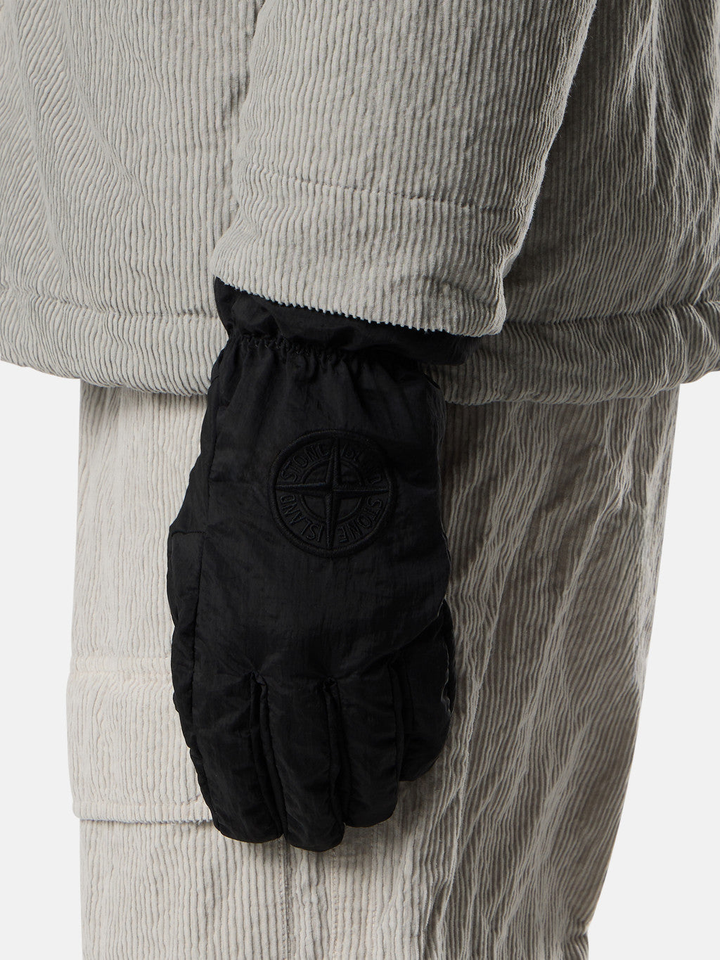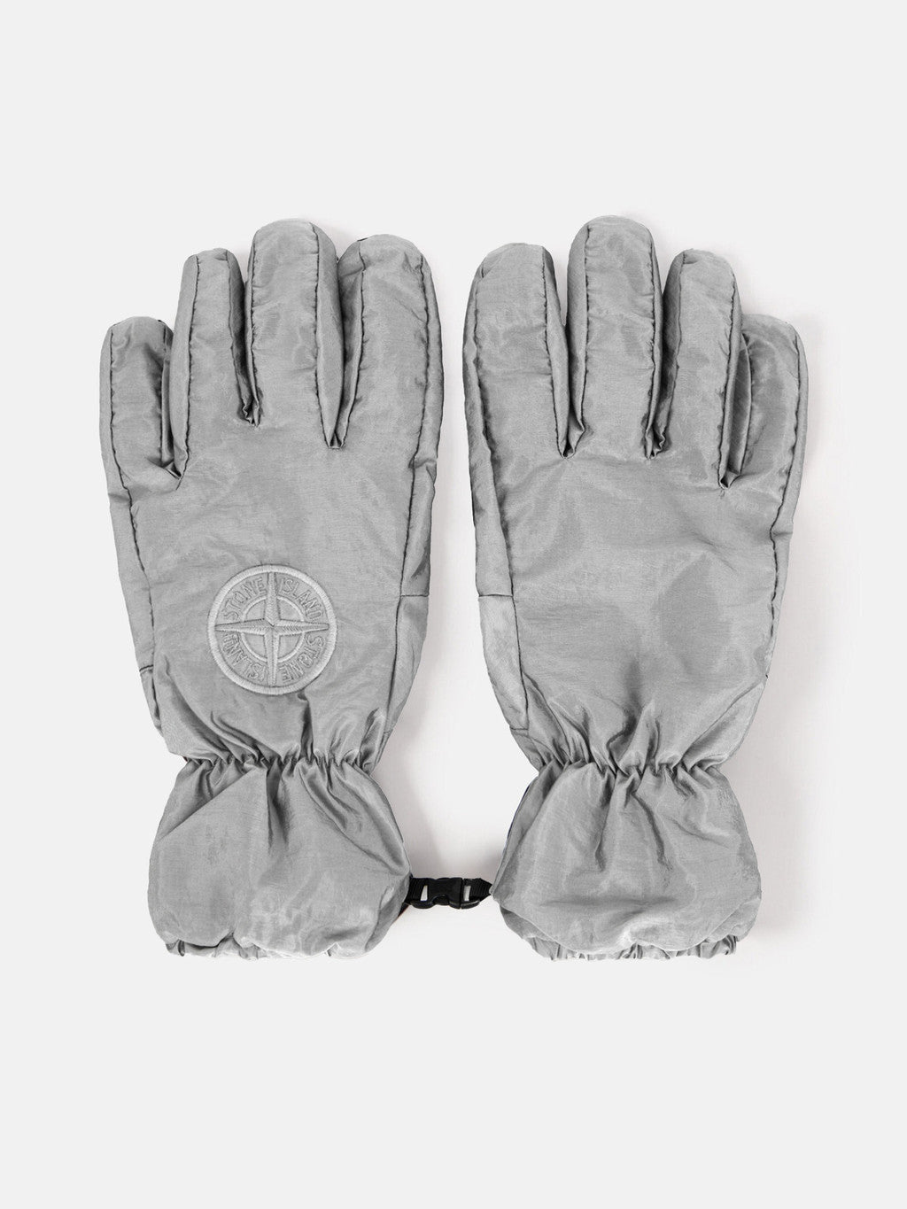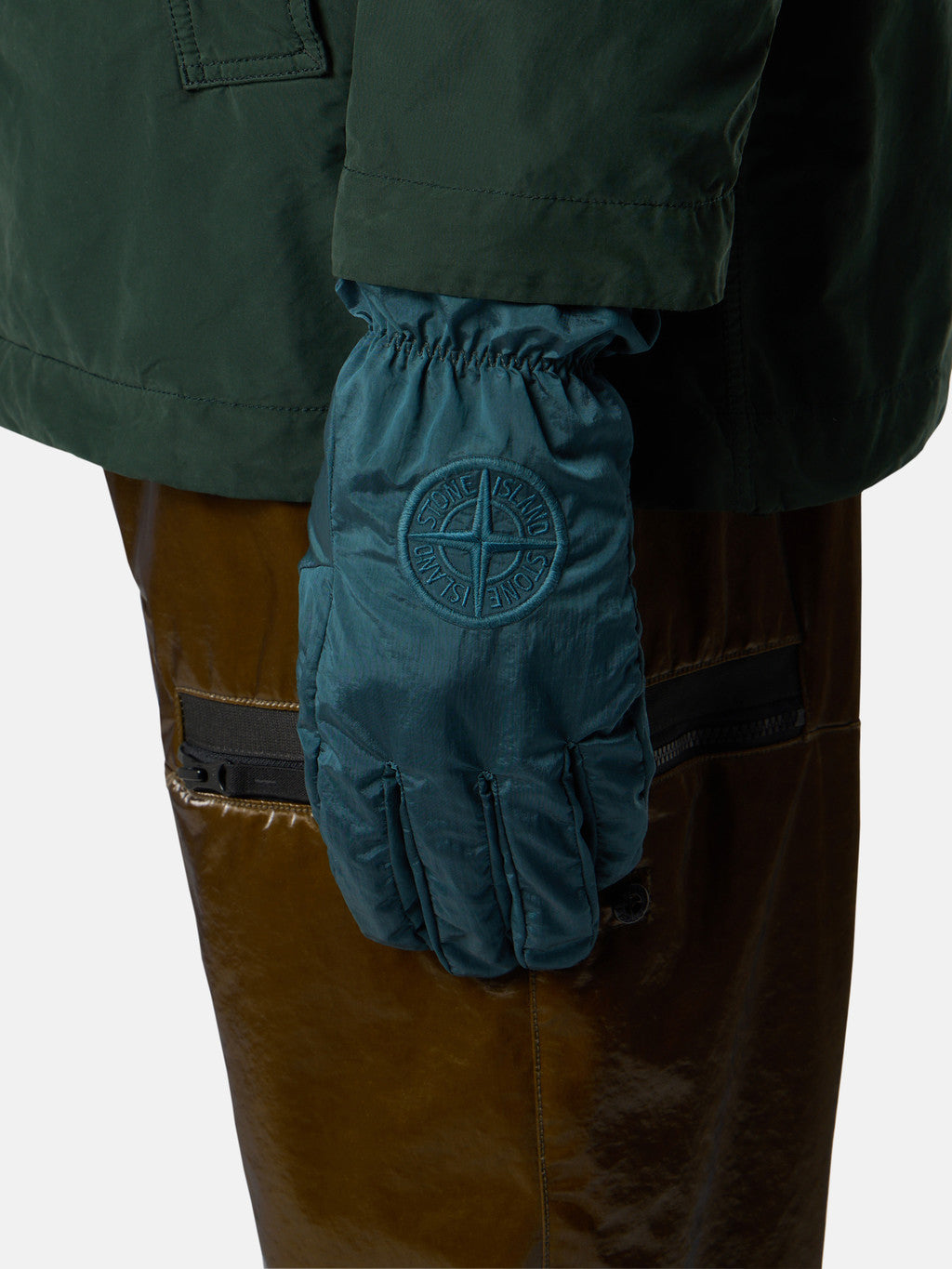 Gloves in Stone Island's iridescent Nylon Metal fabric with polyurethane coating. The evolution of this iconic fabric sees the use of ECONYL regenerated yarns: the life ended nylon, pre- and post-consumer, is recycled with a complex depolymerization process to create this fibre that features the same intrinsic characteristics of nylon from fossil raw material. Nylon mesh lining.