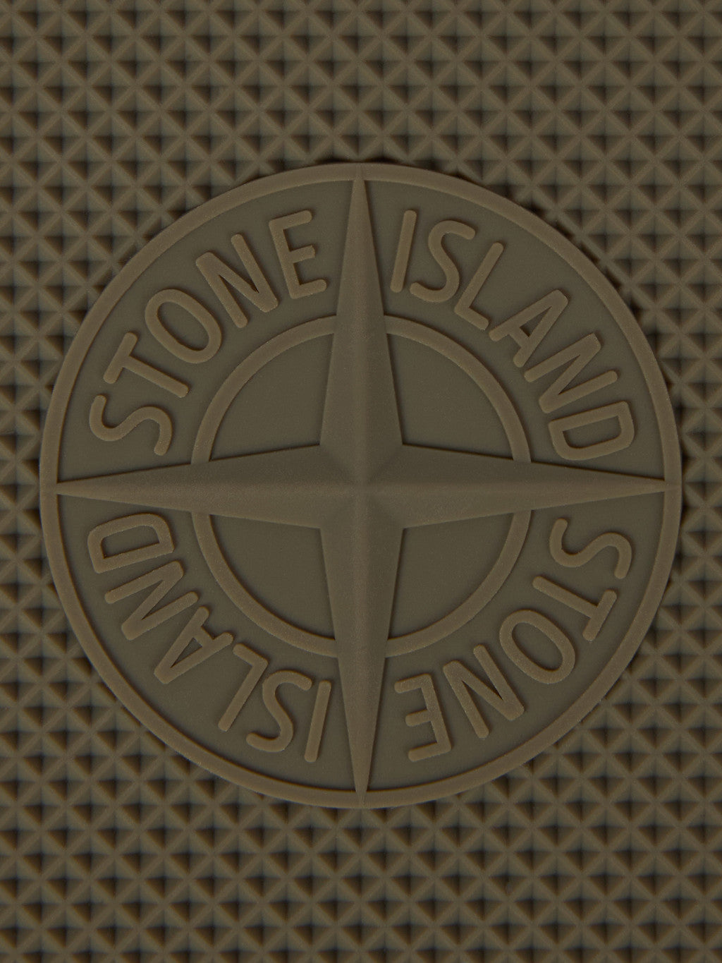 Case for the iPhone 16 in silicone inspired by debossed rubber patches on Stone Island garments of the 1980s.