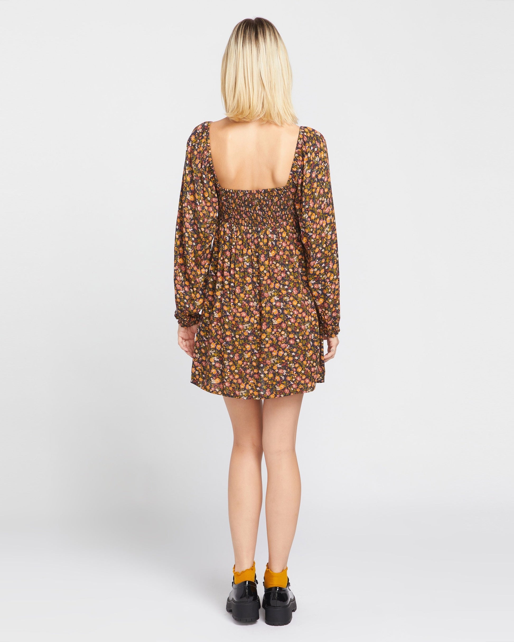 • Allover printed long sleeved mini dress
