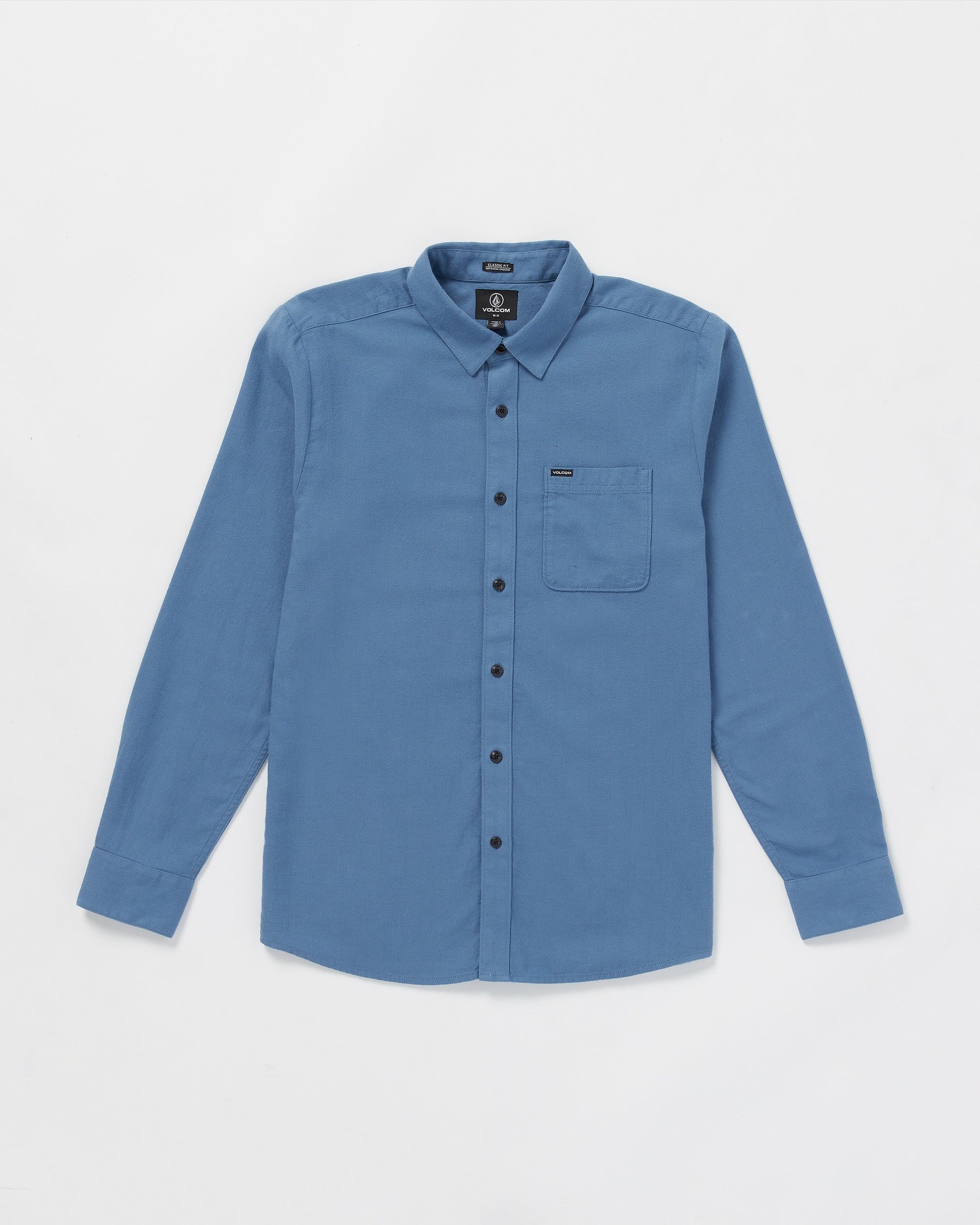 Warm up when the temps drop with this supremely soft 100% cotton flannel. The classic fit and left chest pocket add a timeless touch, while the stone logo and custom buttons provide a signature "V" style. Perfect for layering or rocking solo, this solid long-sleeve shirt is a cool weather staple you'll reach for again and again. Featured here in blue.