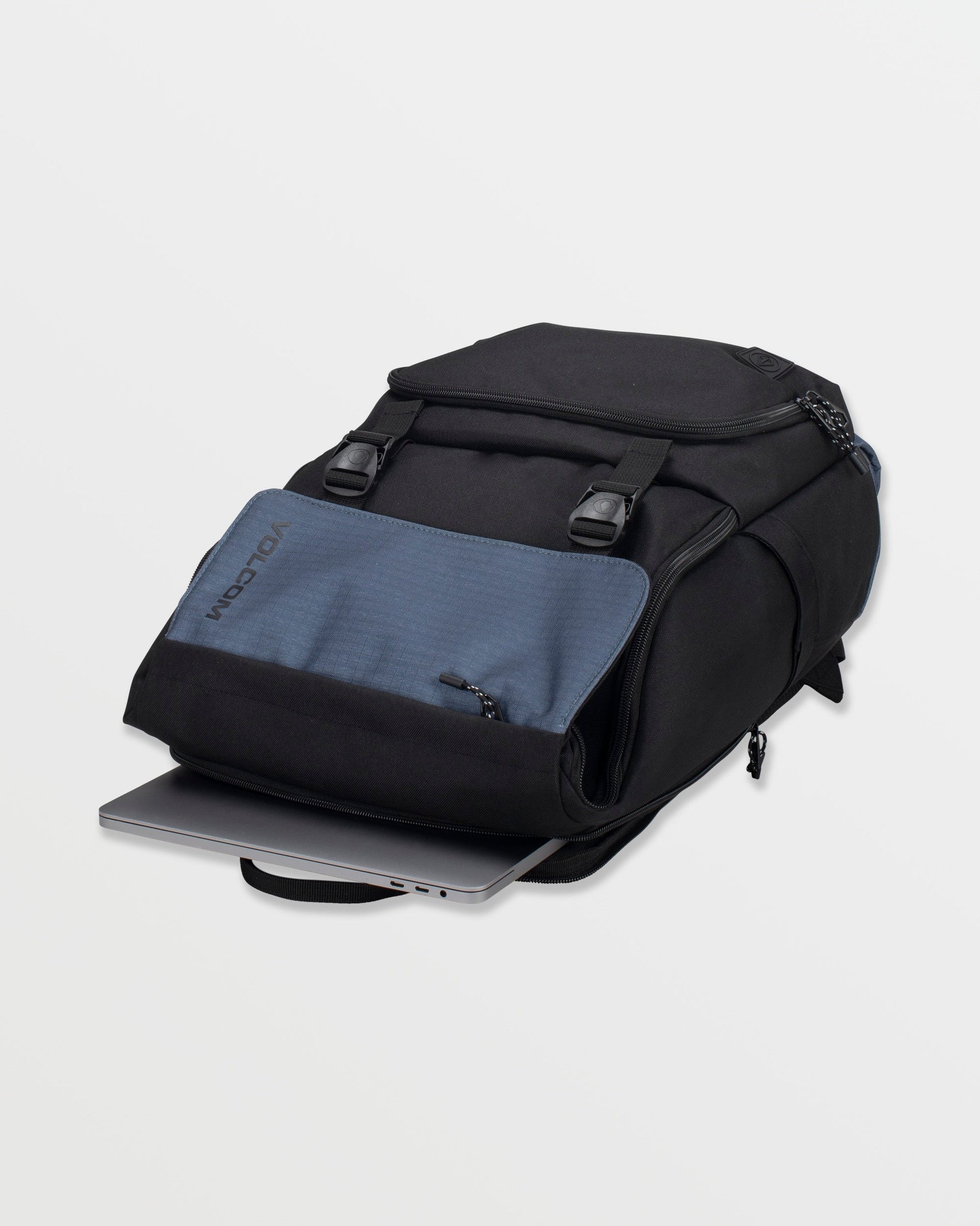 Top the charts this year with the Charter Fold Over Backpack. This versatile and durable backpack offers ample storage and easy-to-access pockets in all the right places. The spacious main compartment and padded laptop sleeve keep your most important gear safe and sound while the front organizer pocket corrals small items. Padded straps keep it comfy, no matter how heavy it gets. Water bottle pockets on each side make it easy to stay hydrated. Featured here in storm blue.