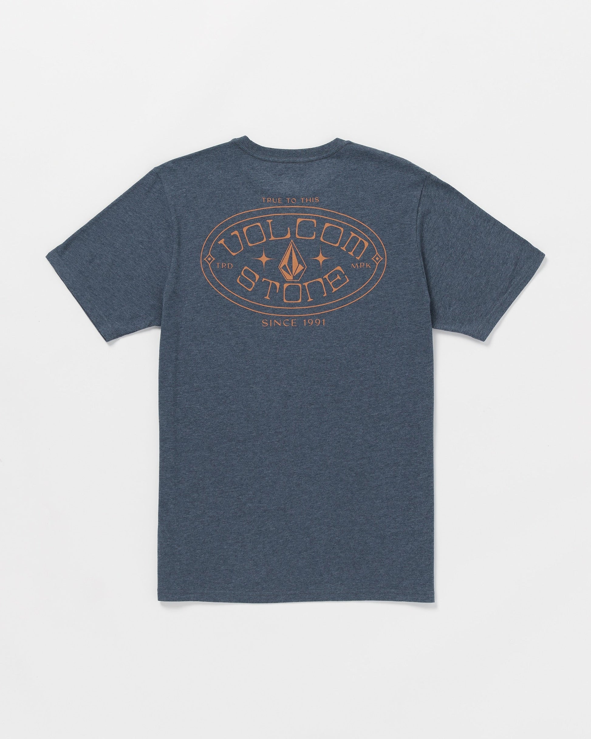 With a modern fit and soft hand screen print, this medium-weight tee is a solid everyday essential. The cotton-polyester blend gives it a classic heather look. Featured here in blue.