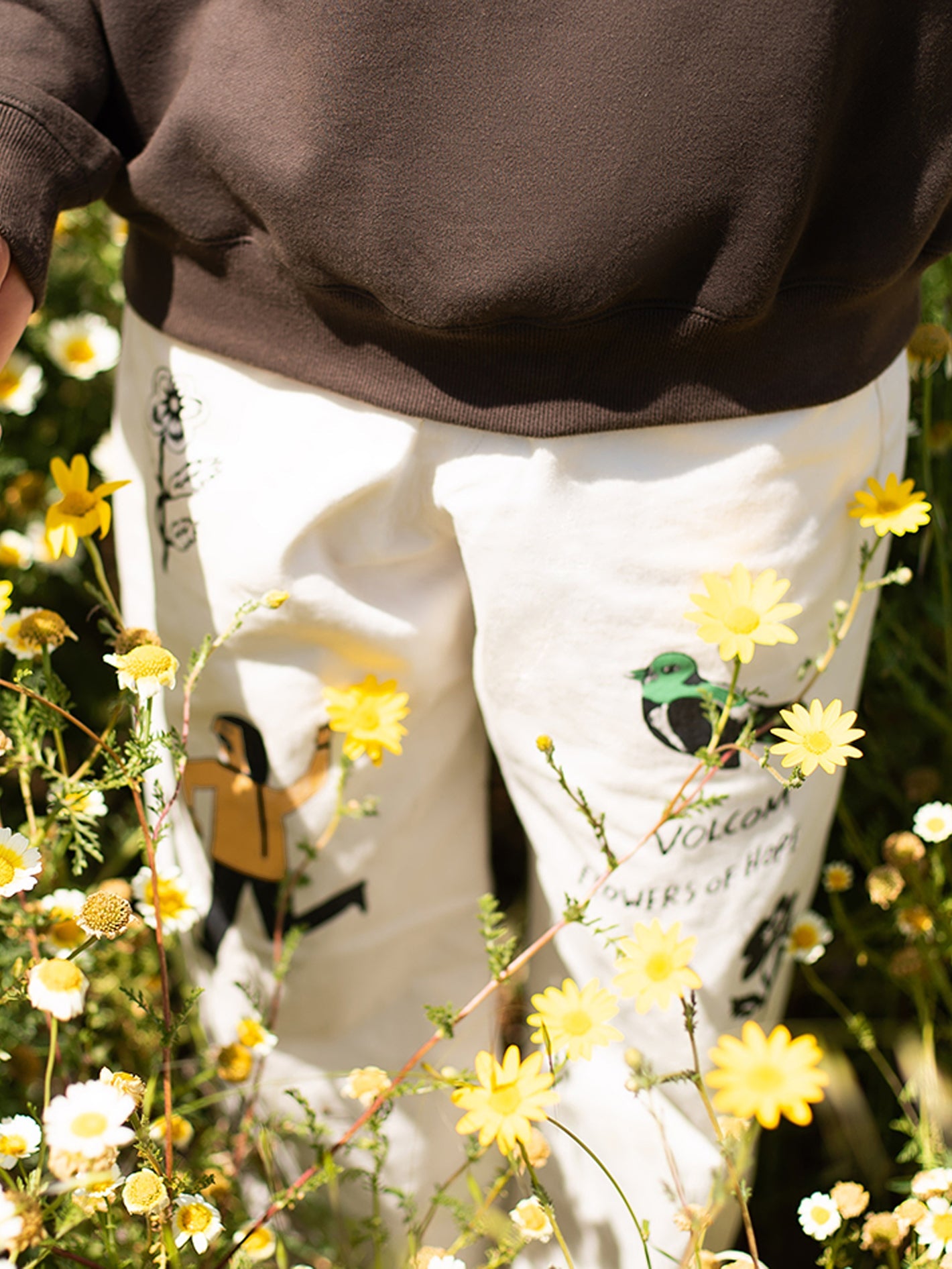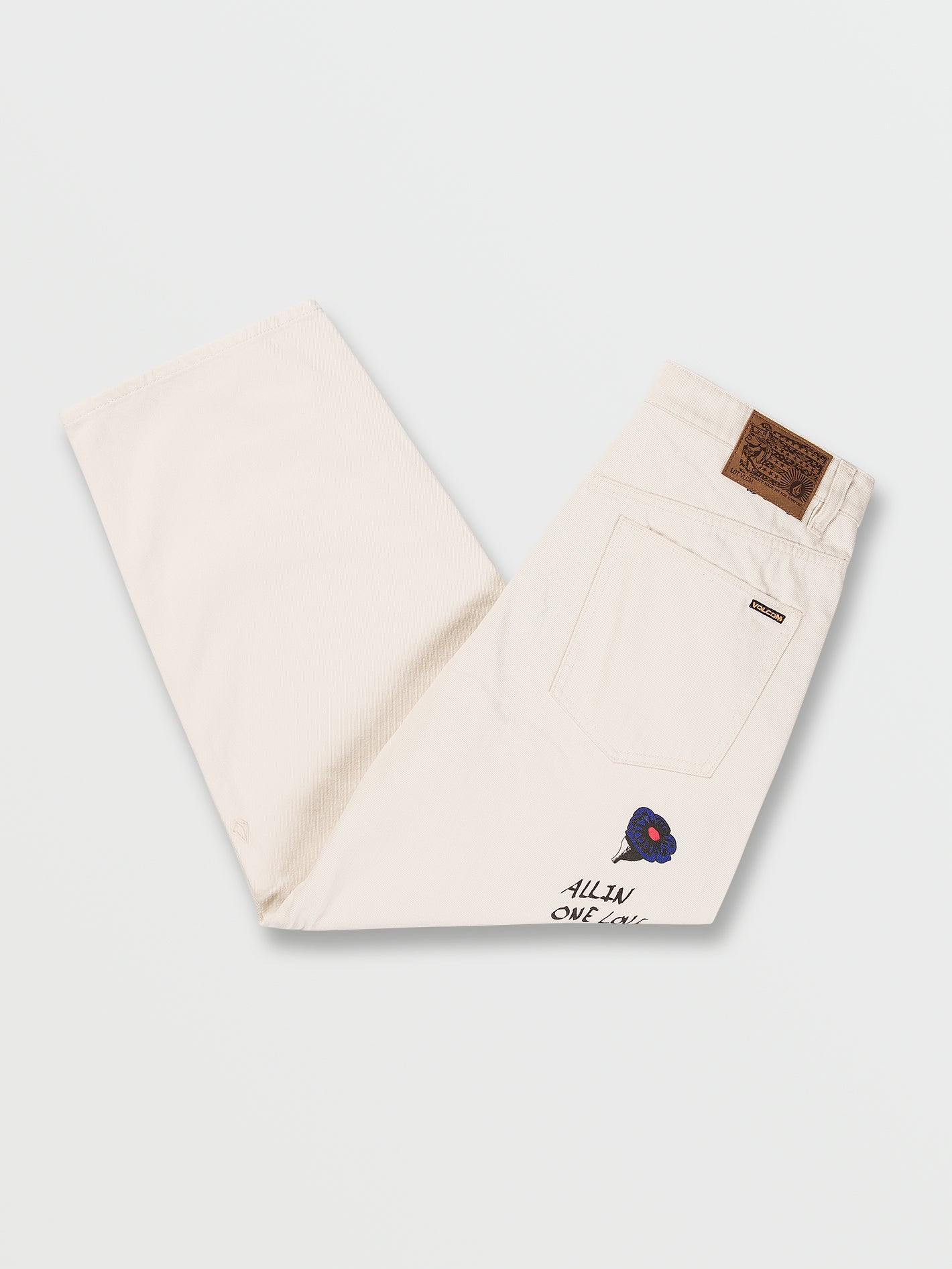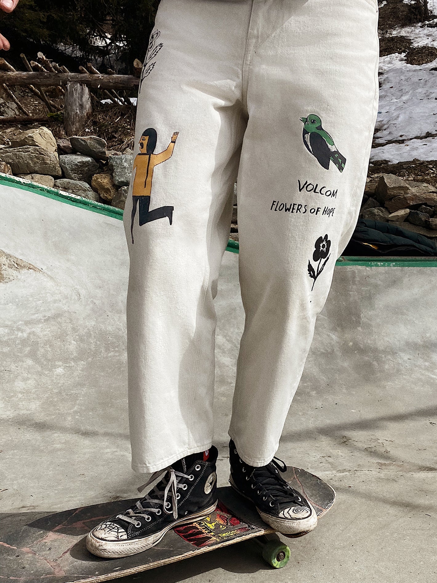 Part of "V"'s Featured Artist series, this denim is unlike any other withits total rad style. With unique printed novelty placements straight from the creative brain of Bob Mollema, you'll enjoy the comfort of a loose fit, relaxed rise, utilitarian pant that is not only comfortable and stylish, but is better for the planet. Saving approximately 12 liters of water per pair when compared to conventional wash methods, this Water Aware denim forgoes softner and removes the desizing wash to achieve its water savings.
