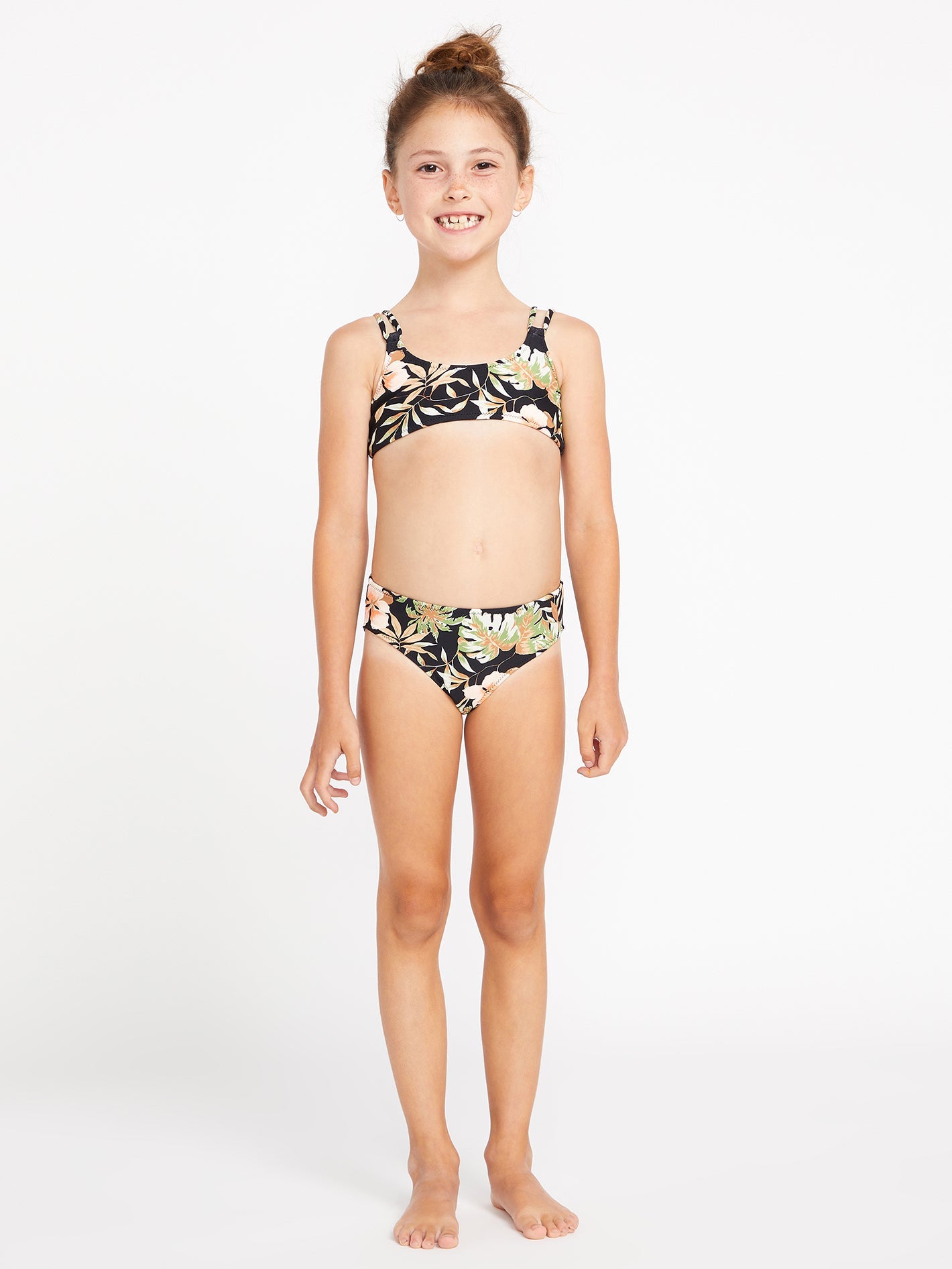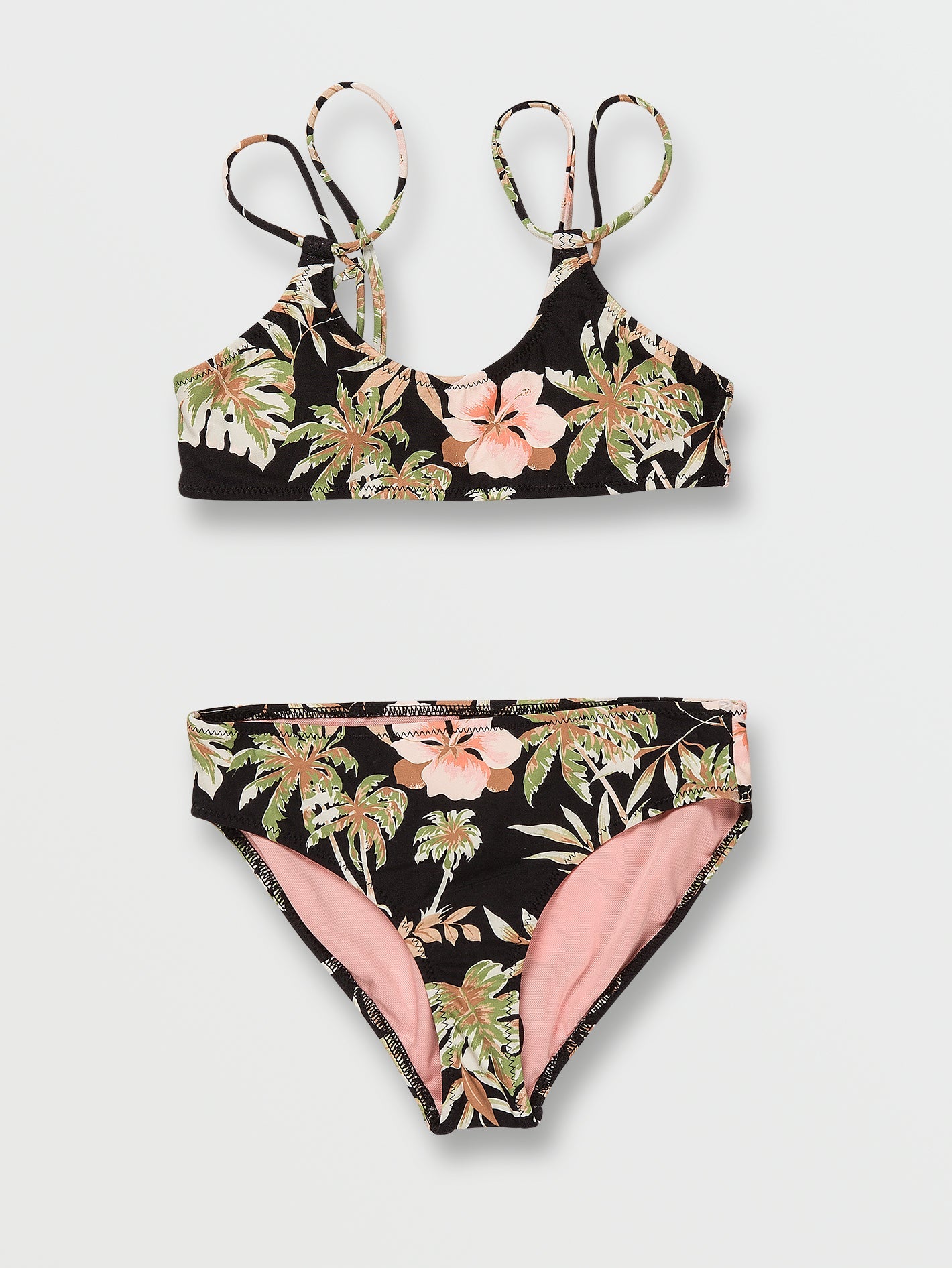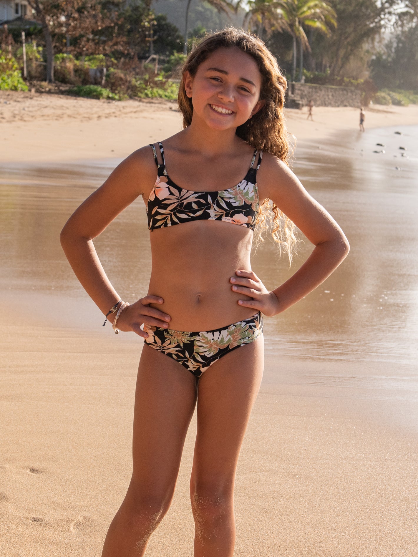 Delivering an elegant look and cute tropical vibes, the For The Tide set offers more than gorgeous style. Part of "V"'s Eco-True collection, it's made with recycled nylon, making it truly more conscious swimwear. The top is a scoop neck style with adjustable over the shoulder straps, and the bottom offers full coverage on this set.