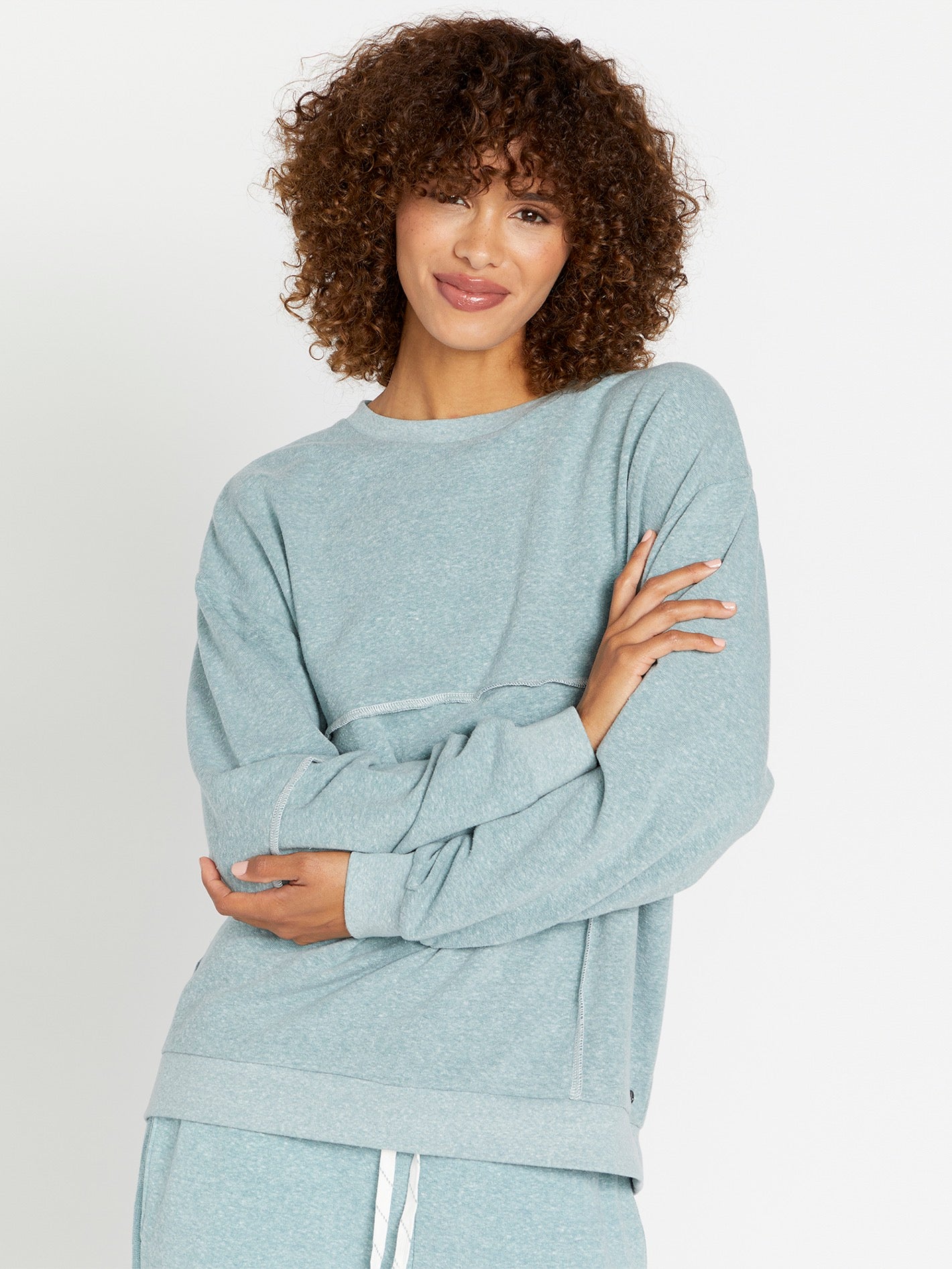 Part of "V"'s best selling Lived In Lounge collection, this crew fleece is crafted from a super soft french terry in a loose oversized fit with oversized stitched paneling that adds a touch of uniquness to this closet staple. Comfortably add layers beneath or wear on it own. Pair it with the Lived In Lounge Frechie pants or a some denim shorts to complete the look.