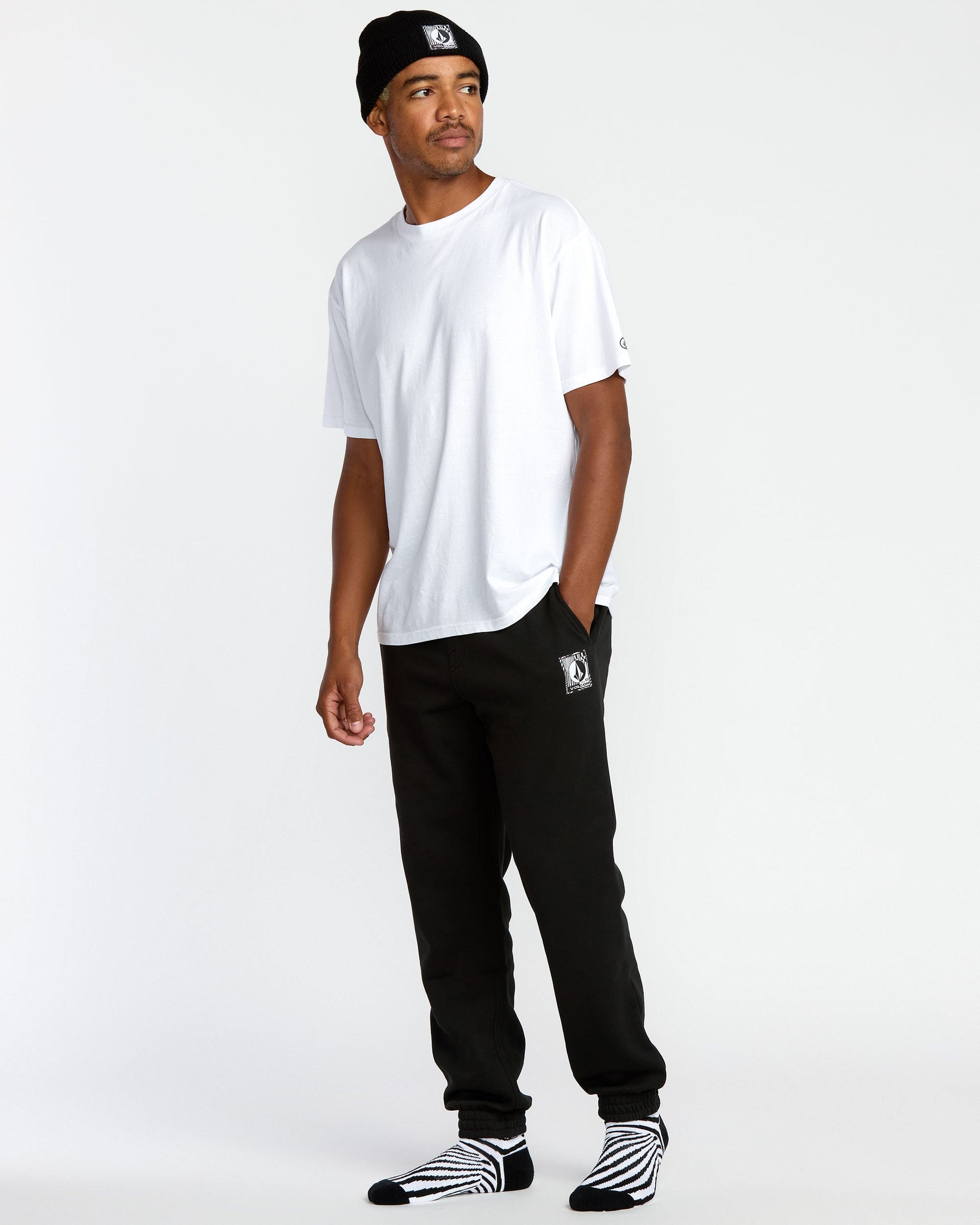 Kick back in signature "V" style with this men's No Service Lounge Gift Set: soft sweatpants, cuffed beanie, and crew sock with jacquard print. Stylish logo patches elevate the laidback, cozy look.
