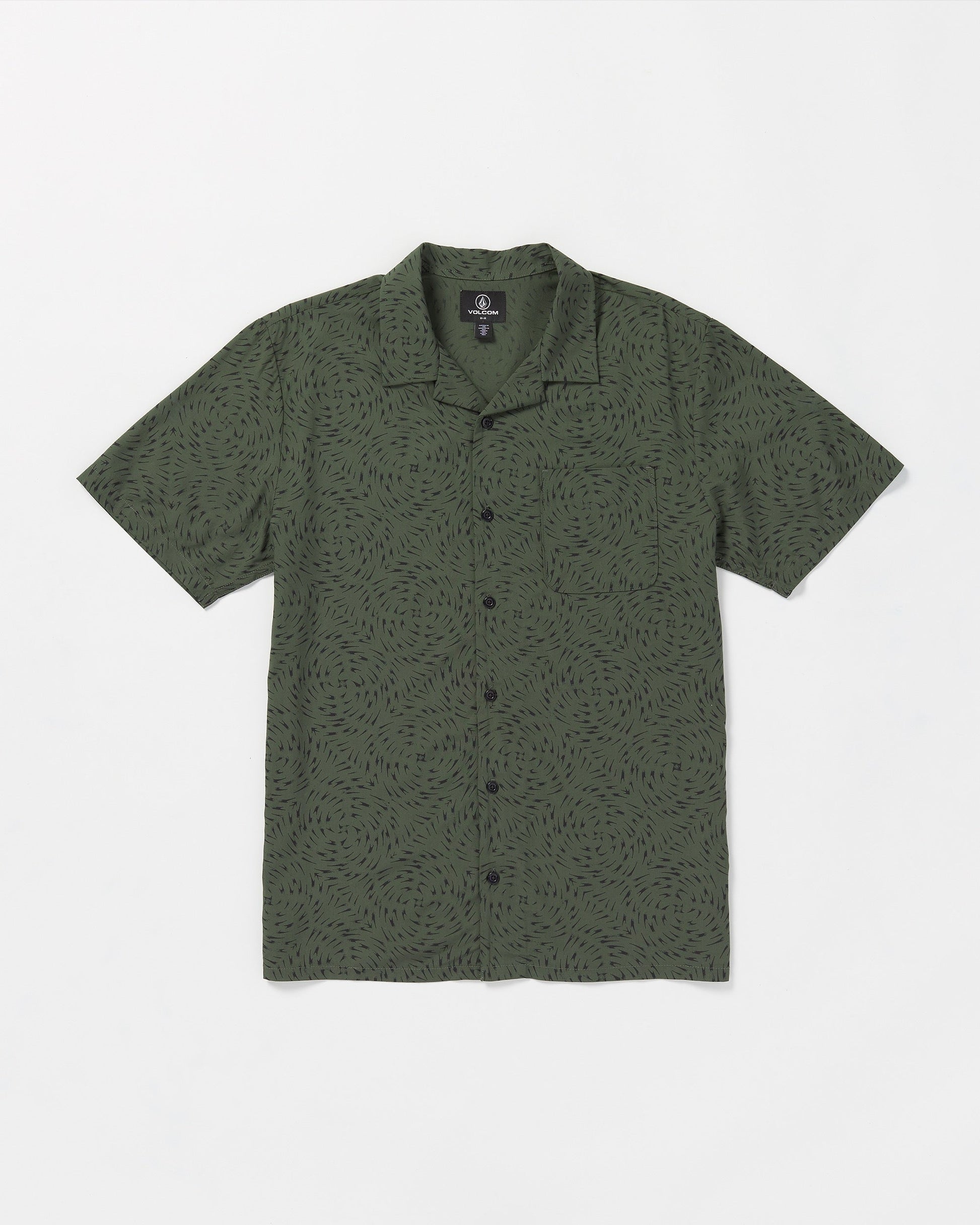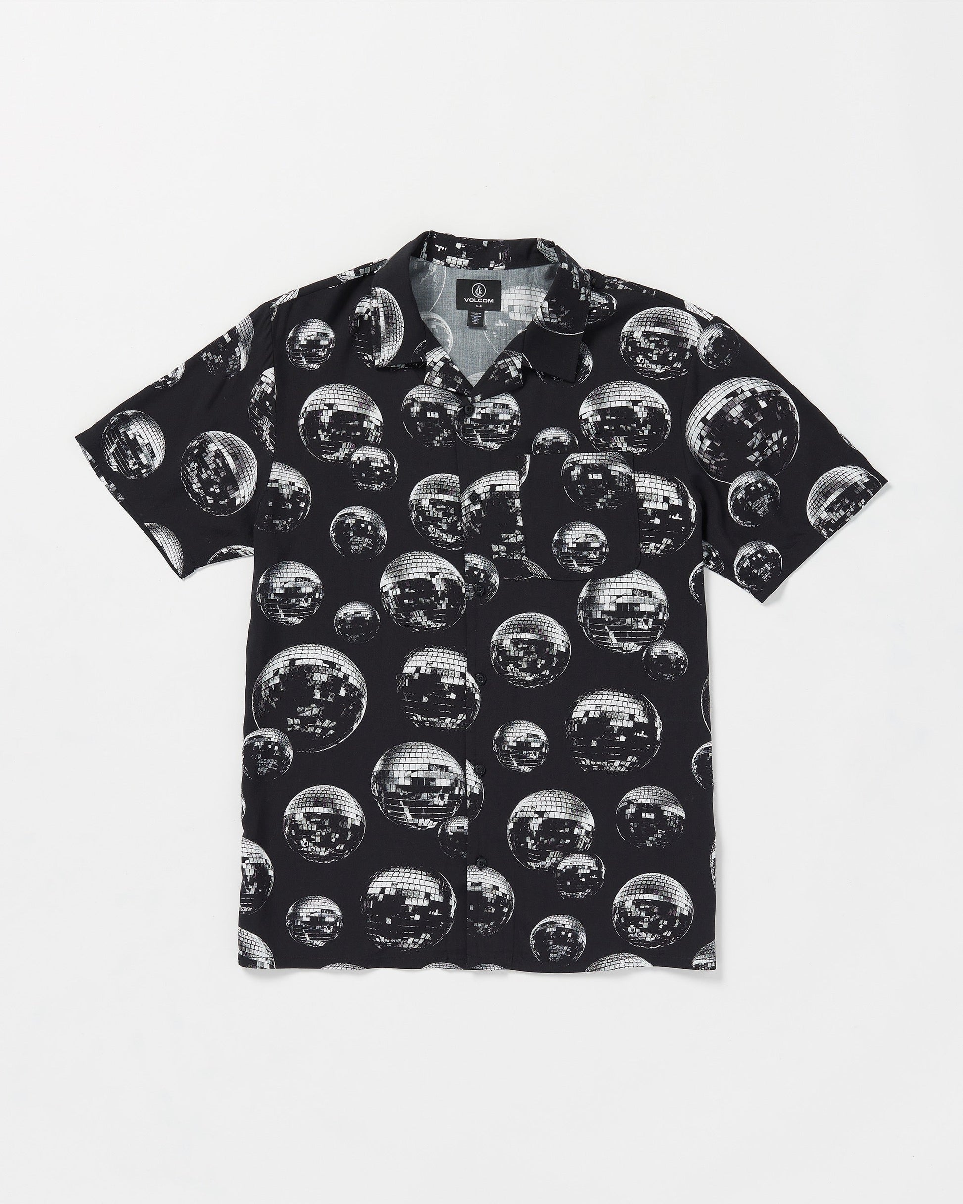 Breeze through the day in "V"'s Packed Up shirt. Crafted from 100% viscose with a custom all-over print, this classic-fit tee features a handy left chest pocket and logo-adorned buttons for a touch of style. Whether you're running errands or kicking back, this easygoing short-sleeve top has you covered. Featured here in black.