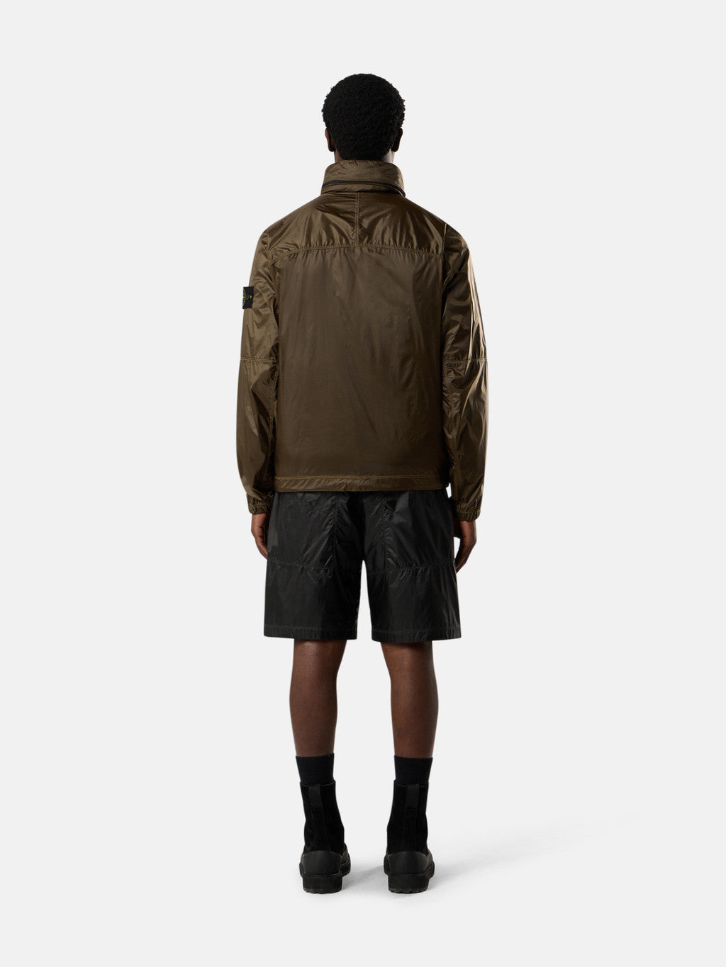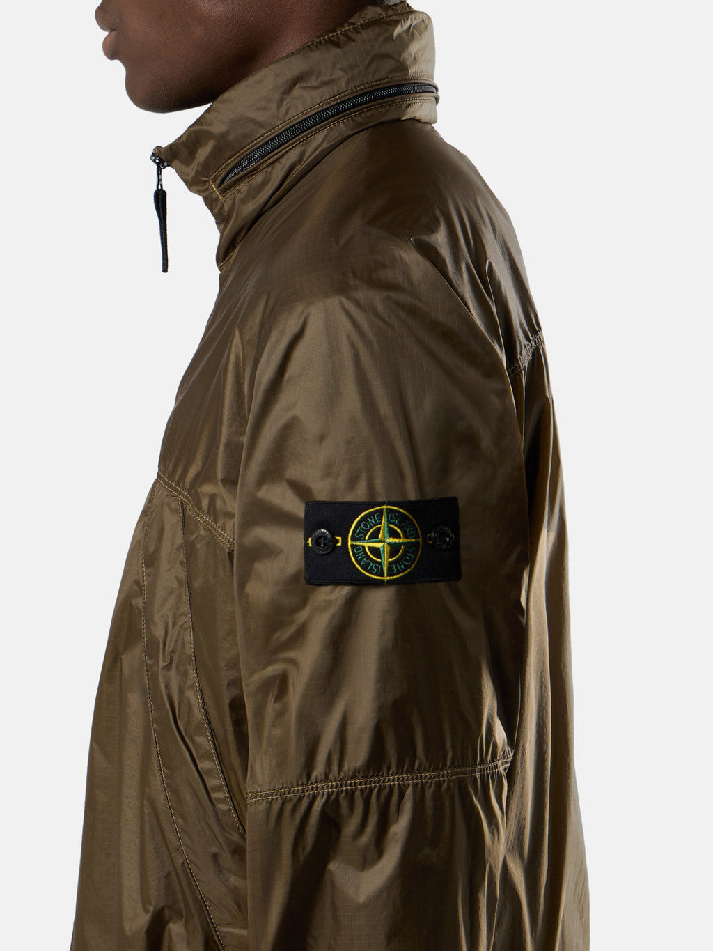 Light jacket in a high-tenacity ripstop nylon 6.6 that is lightweight yet extremely durable. The semi-transparent fabric is double layered on some parts of the garment, highlighting its geometry. Treated with a specific anti-drop agent.