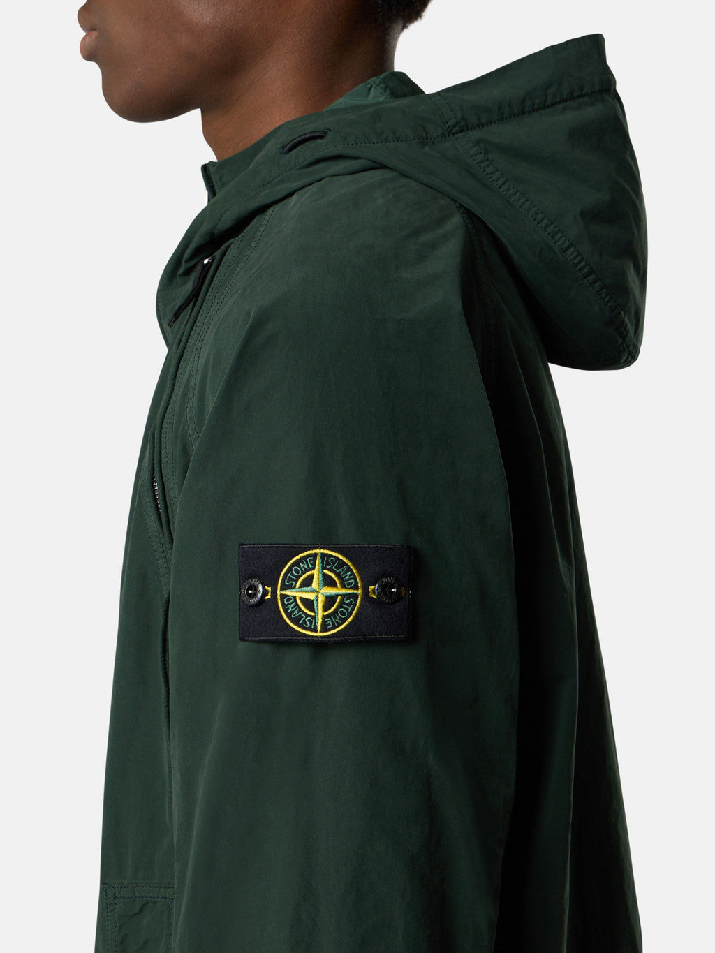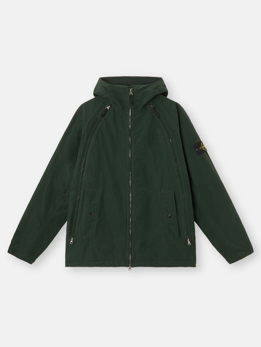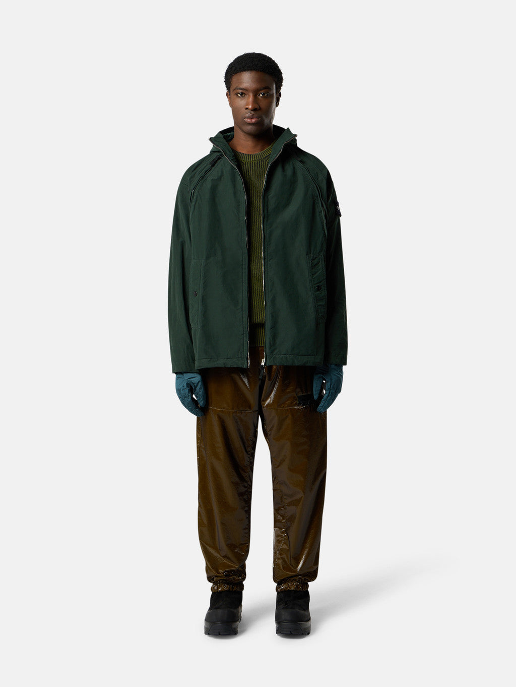 Hooded jacket in a lightweight tela made with Japanese star-shaped cross-section polyester/polyamide yarns. The pieces are assembled and then dyed under pressure at 130¡ãC with the addition of an anti-drop agent. During the garment dye process the heat radically transforms the material's hand and structure. The resulting garments combine an industrial appearance with a unique feel.