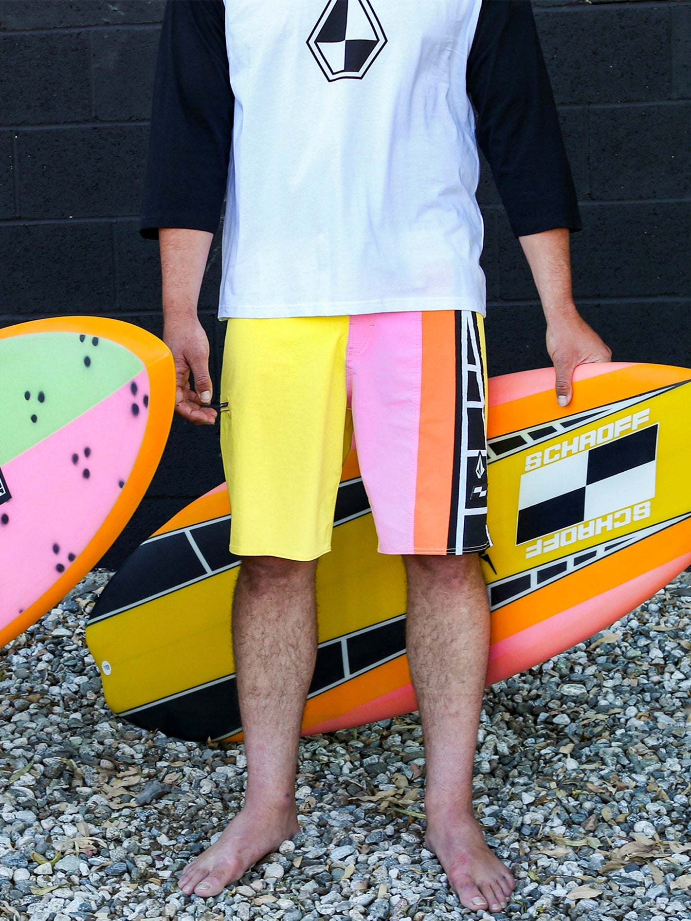 Take a page out of Schroff's playbook and march to your own beat with these epic "V" Liberators Boardshorts. Designed in collaboration with avant-garde artist, shaper, and performer Peter Schroff, these 20" men's surf trunks offer a nod to the past while looking towards the future. 4-way stretch nylon and our secure Cinch Fly technology give these retro-looking boardshorts a decidedly modern feel.