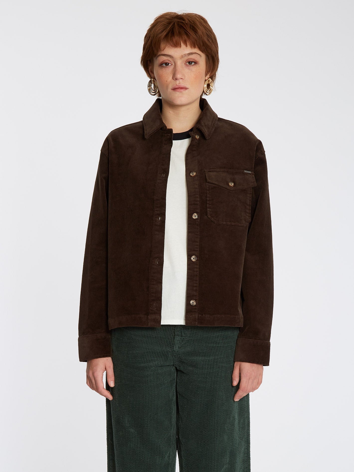 • Boxy shirt jacket with button front placket
