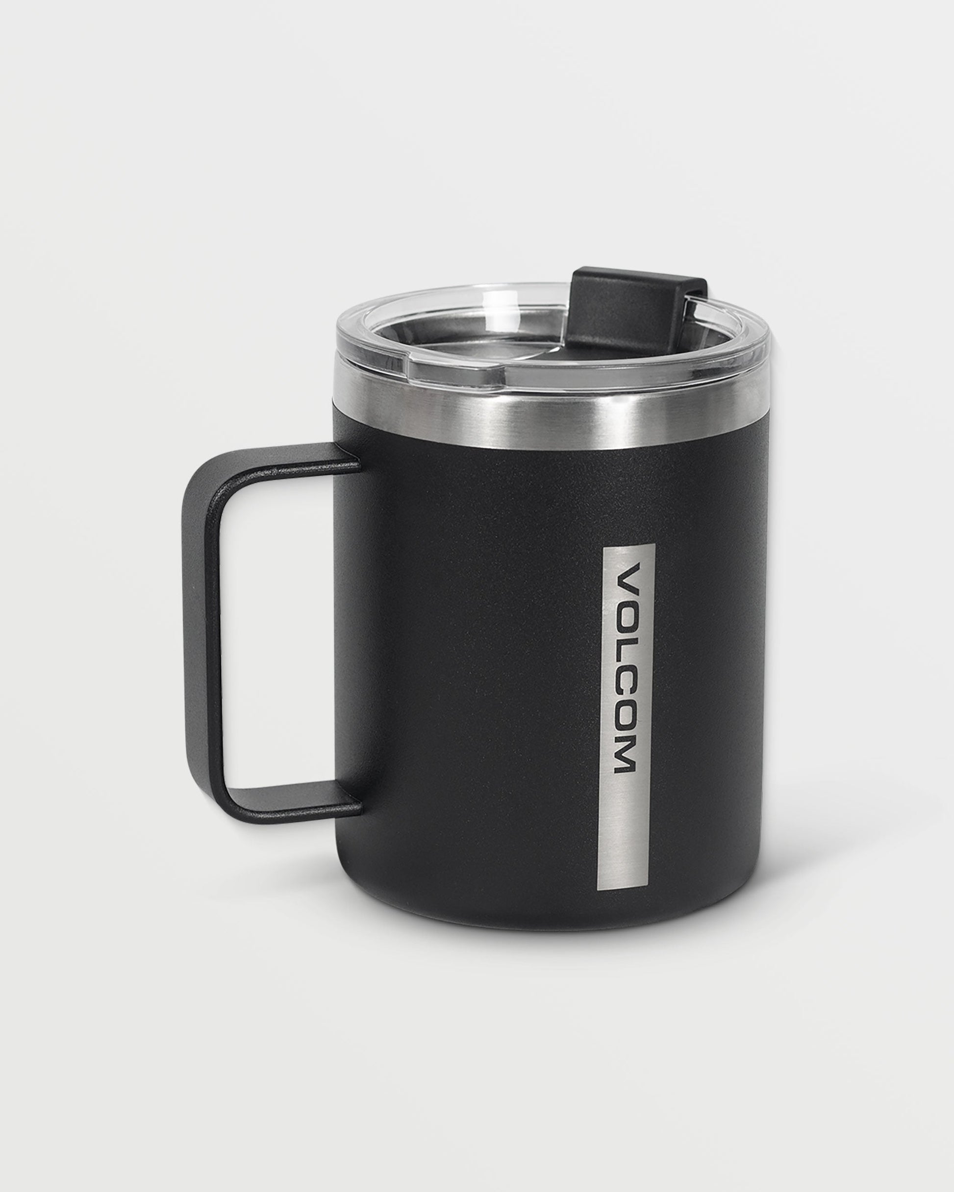 Whether you're at home, in the office, or on the go, make the Shortie Camp Mug part of your daily beverage ritual. Made from stainless steel and double wall vacuumed insulated construction, it keeps your beverages hot or cold for longer periods of time. The easy-hold handle provides a comfortable grip, while the spill-resistant flip lid ensures hassle-free sipping on the go. Featured here in black white.