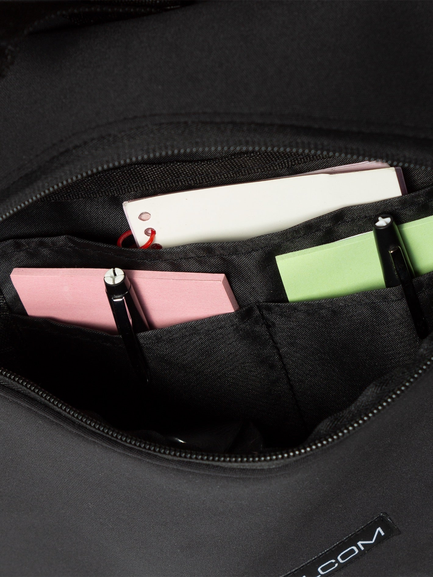 The So Jaded Backpack is a stylish and functional women's backpack with a large main compartment with a front flap and cinched drawstring closure, providing easy, but secure access to your belongings. It has slip side pockets for additional storage and a back panel with logo stitching and padded shoulder straps for comfort. The backpack measures 12" x 6" x 17" and is finished with a woven "V" patch label.