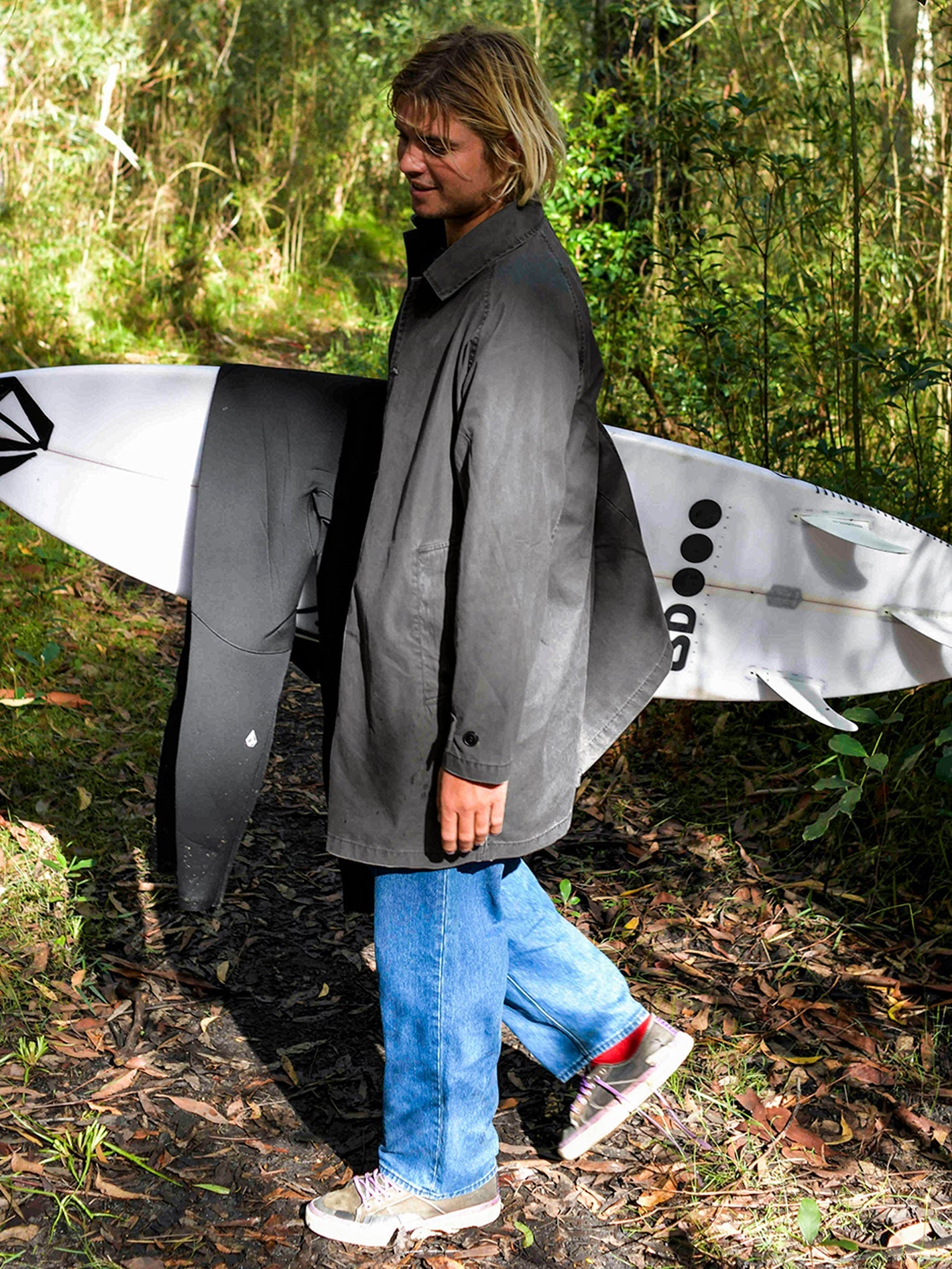Designed in collaboration with the artist, musician, and one of surfing's most exciting characters, Noa Deane, this modern spin on a classic trench delivers truly avant-garde style. Made with a relaxed fit and a mid-thigh length, you'll enjoy comfort and truly unique style in this.