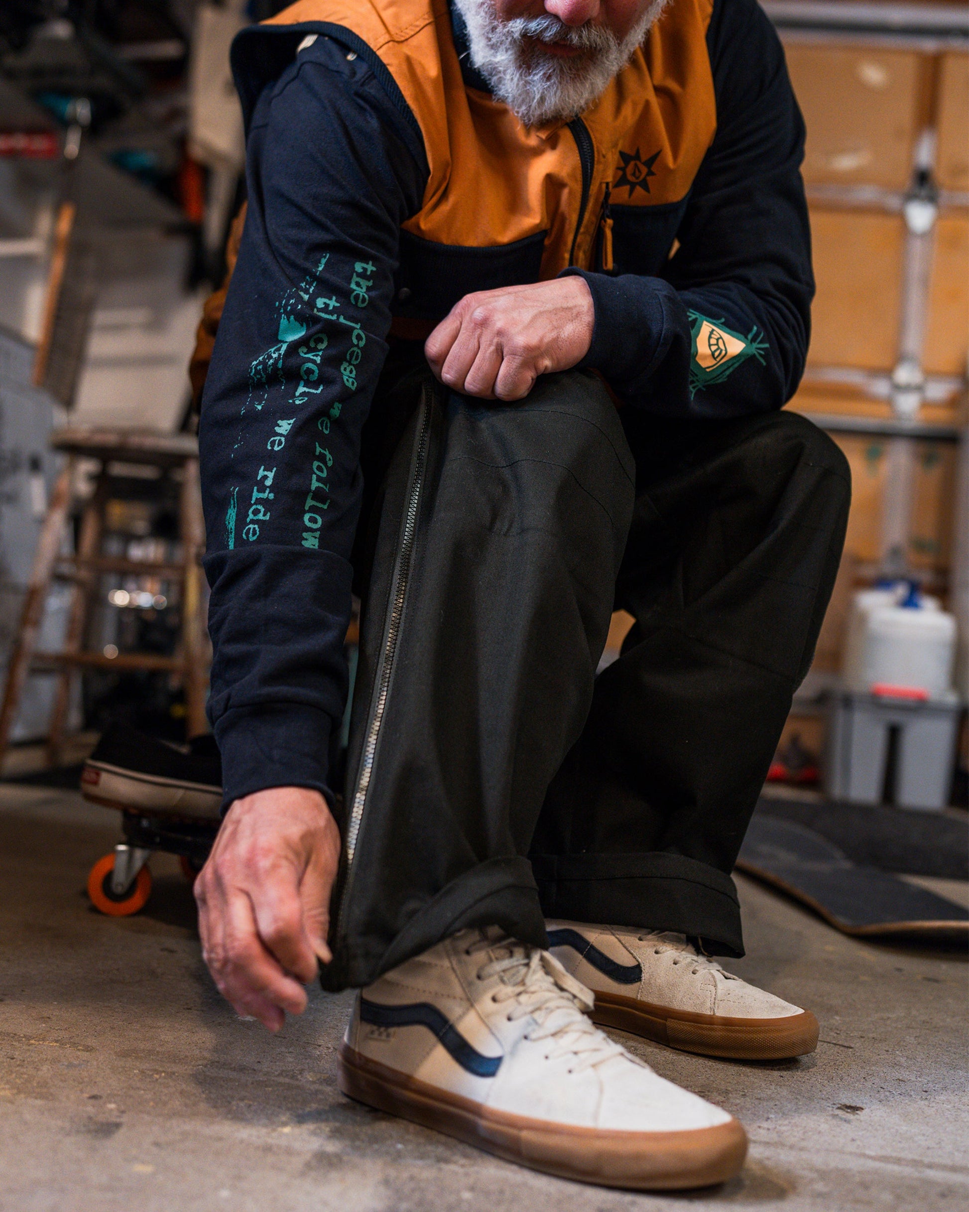• Legs have a 3/4, 2 way zipper along the side seam and finishes into a hidden zipper garage at the bottom