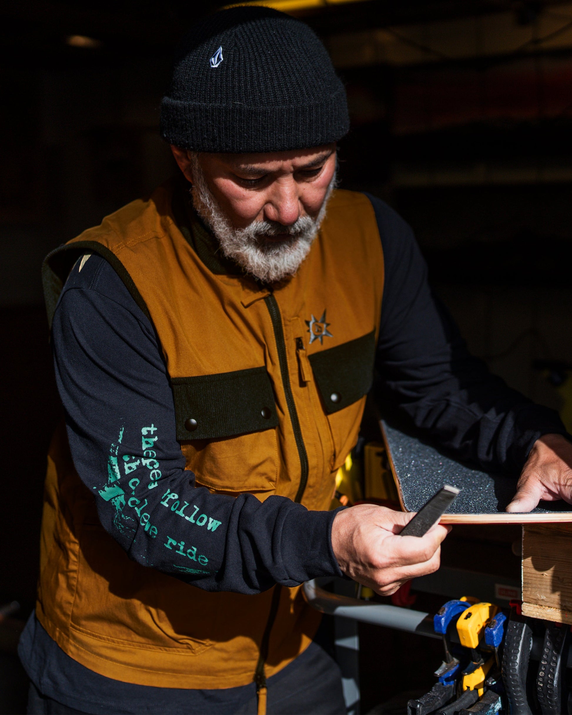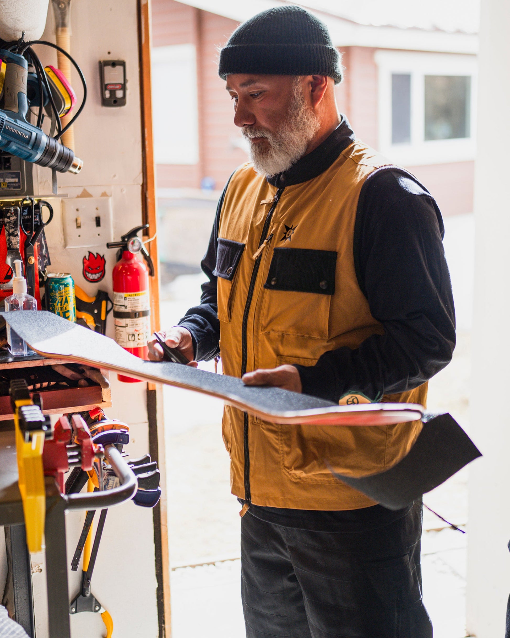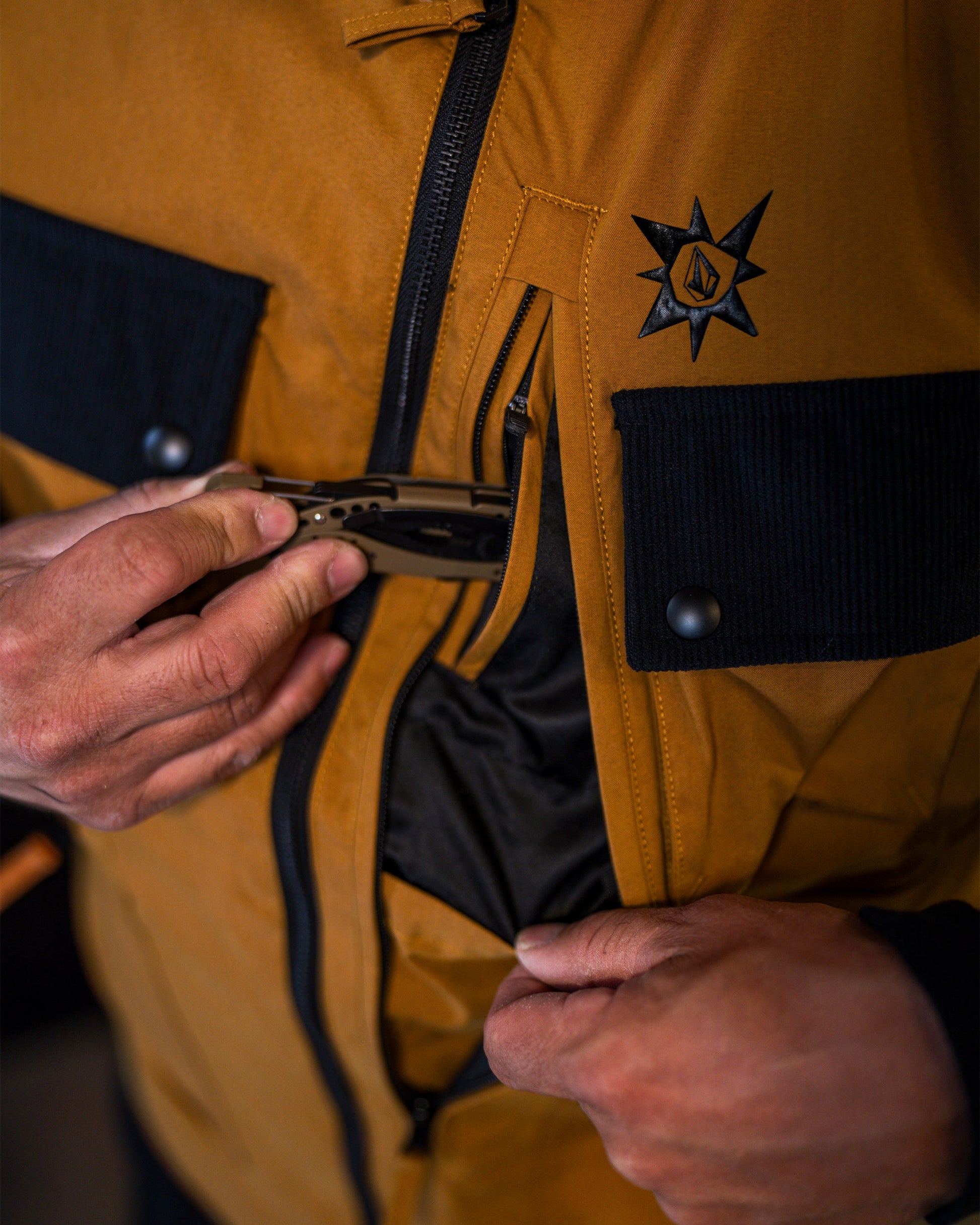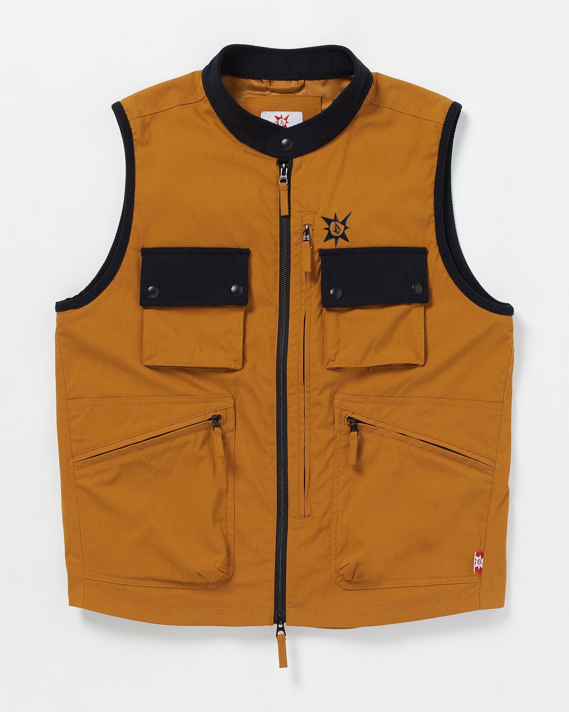 The Tokyo True vest was designed in collaboration with snowboarding legend Bryan Iguchi. It seamlessly blends style and function with its oversized mock neck, quilted thermal panels, and DWR-coated corduroy collar. The thermal defense system, multiple pockets, and packable back pocket make it a universal must-have for cold temps. Featured here in brown.