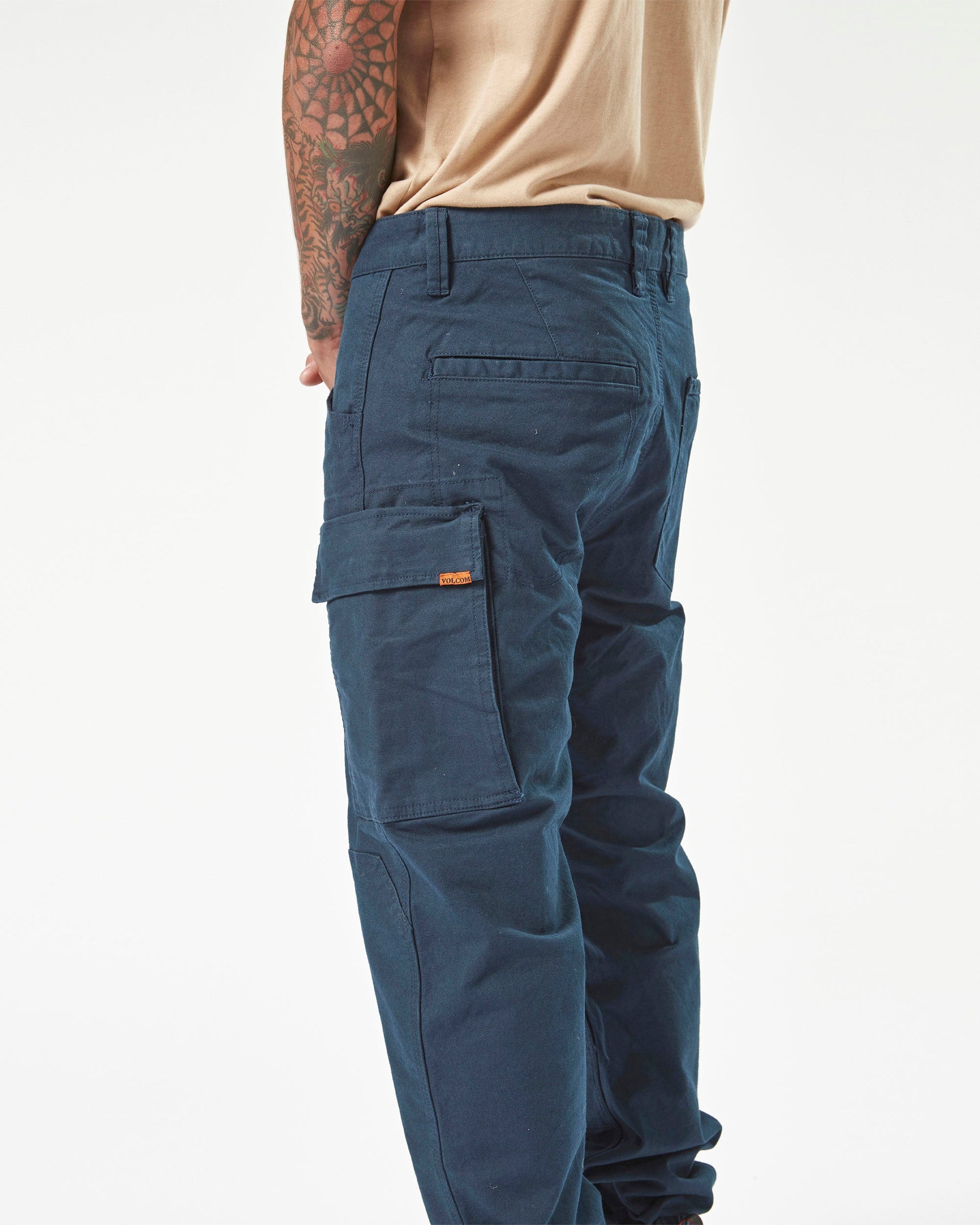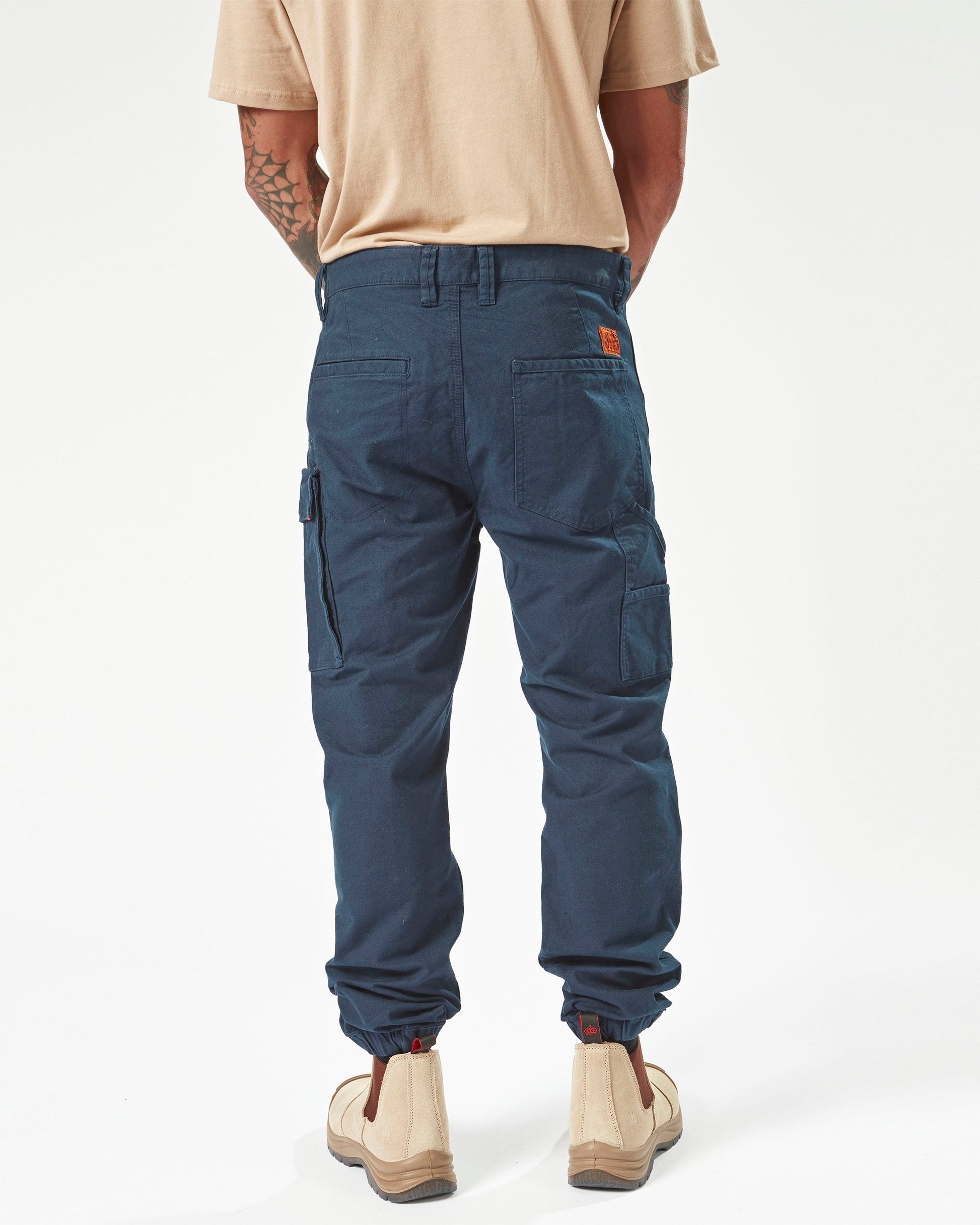 The Workwear Caliper Cuff Pants perfectly blend durability with comfort. They are made from a tough cotton-nylon-elastane stretch canvas with reinforced stress points to maintain the fit. The tapered leg and ankle cuff makes them easy to wear with any footwear your job requires, while multiple pockets keep all those on-the-job essentials close at hand. With "V" Workwear's signature style and robust construction, these pants are durable enough for the toughest jobs but stylish enough for everyday wear. Featured here in navy.