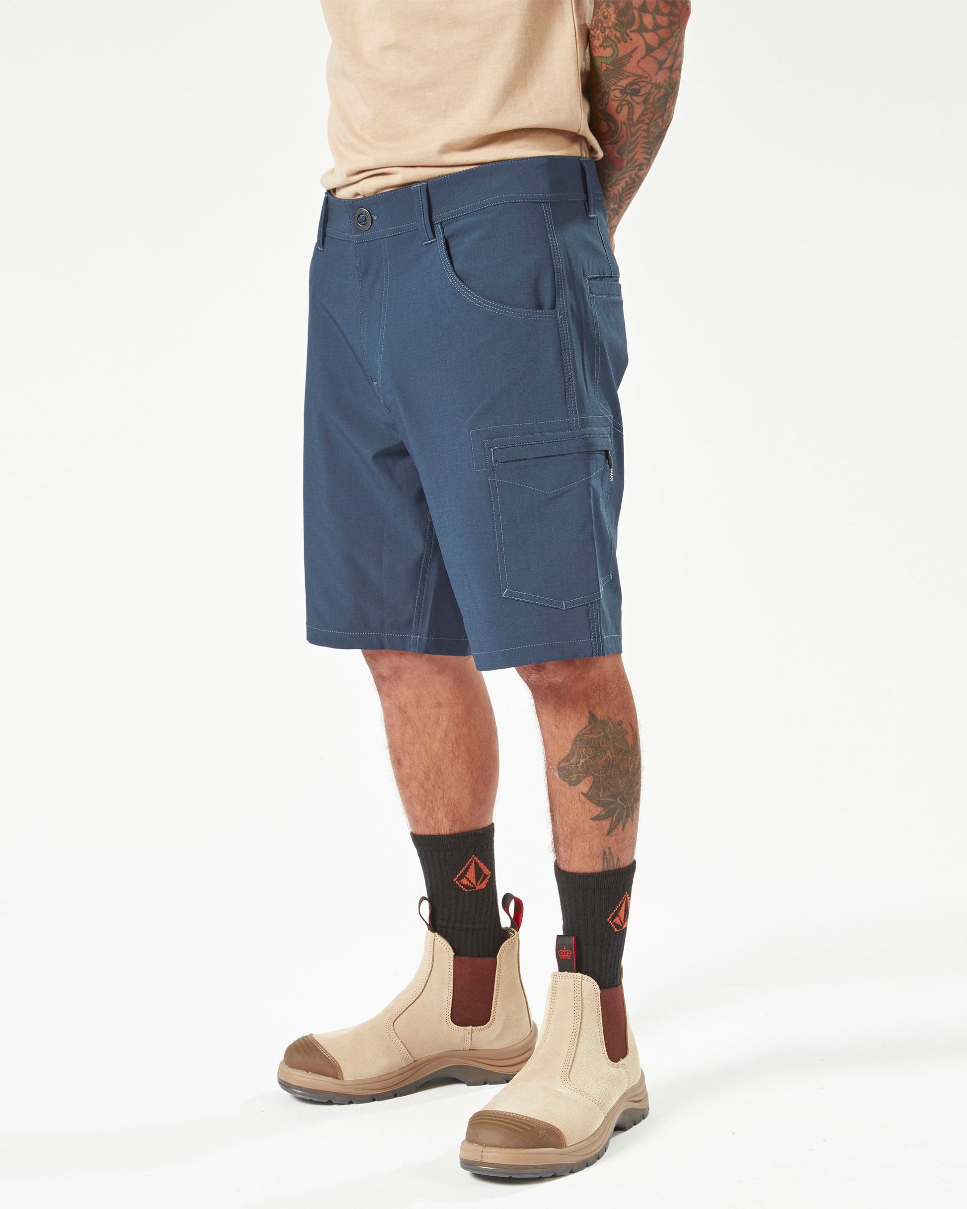 Tackle your to-do list in the Workwear Slab Hybrid Shorts. The stretchy, water-repellent fabric moves with you from work to weekend, while multiple pockets keep essentials close. With a comfortable regular fit and durable construction, these shorts are more than capable of handling your heavy workload. Featured here in navy.