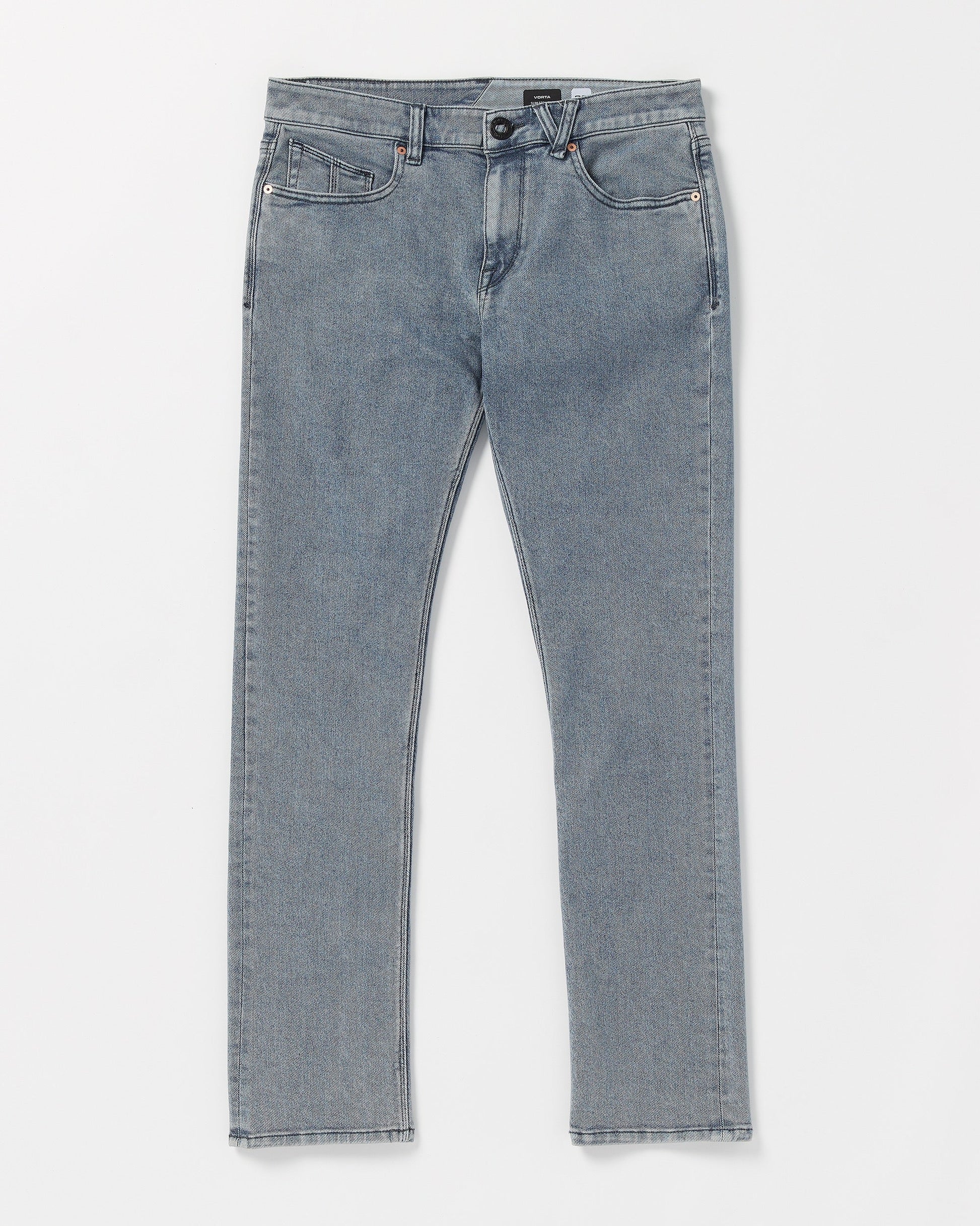 • Classic mid blue denim with a grainy texture, highs and lows along the seams