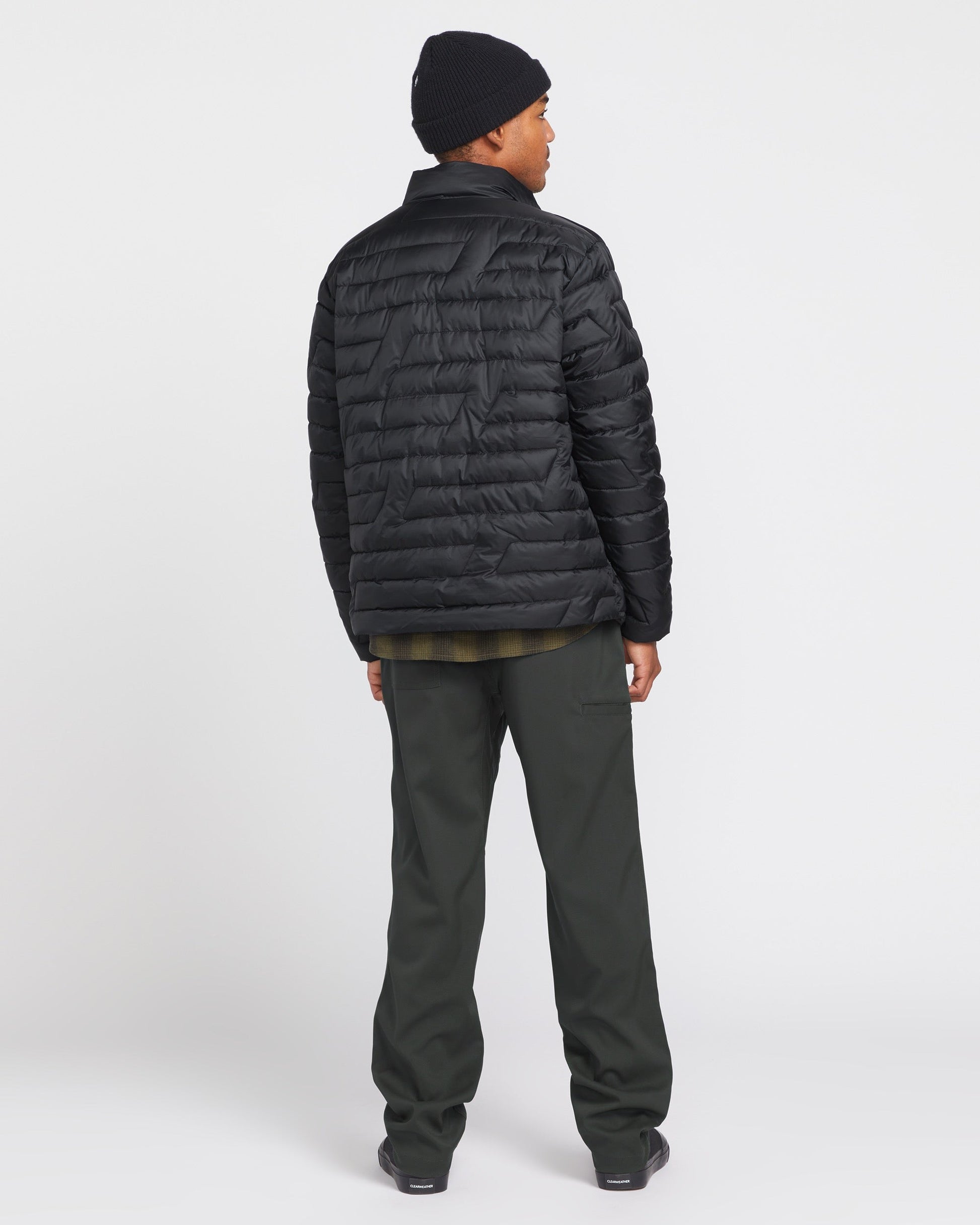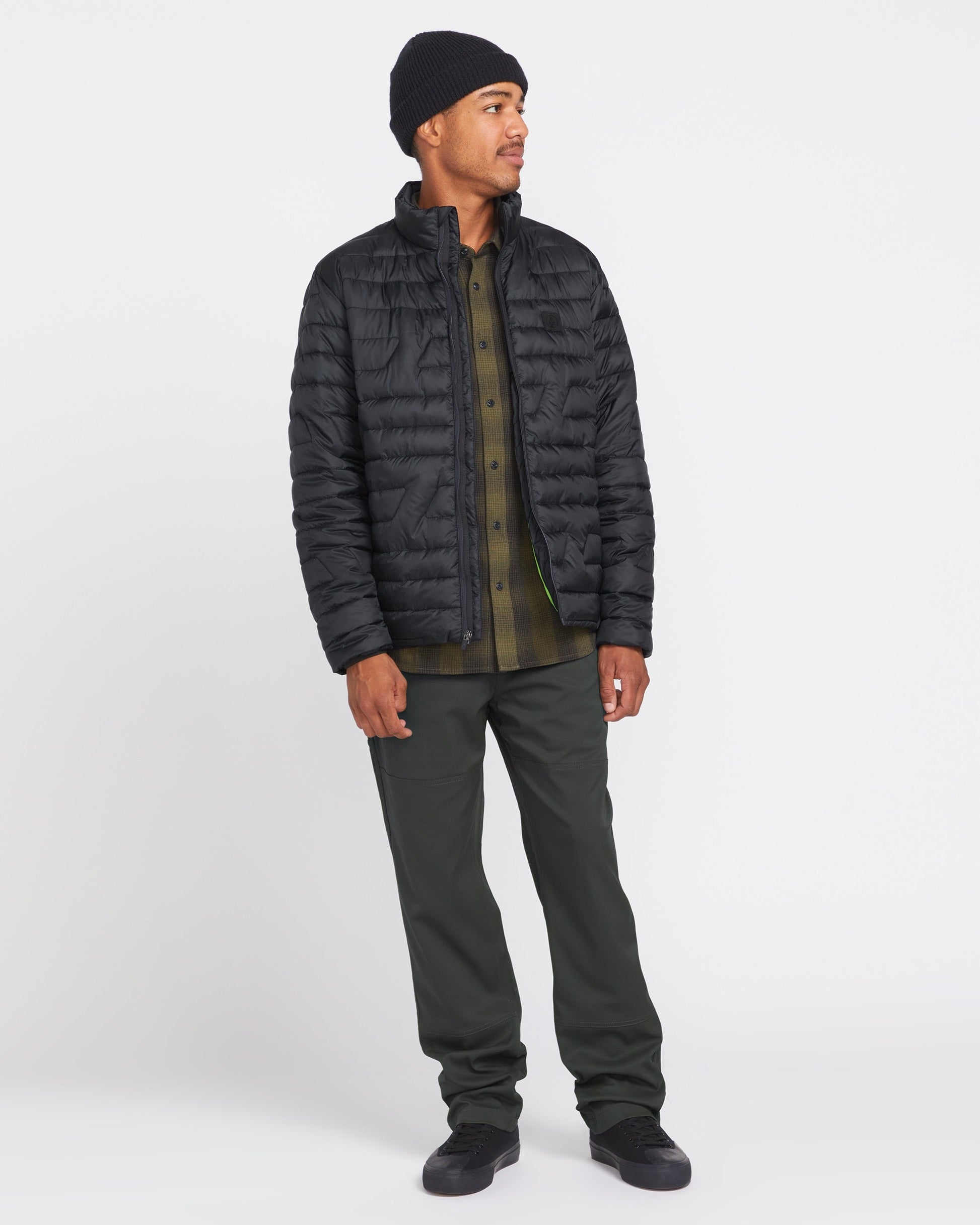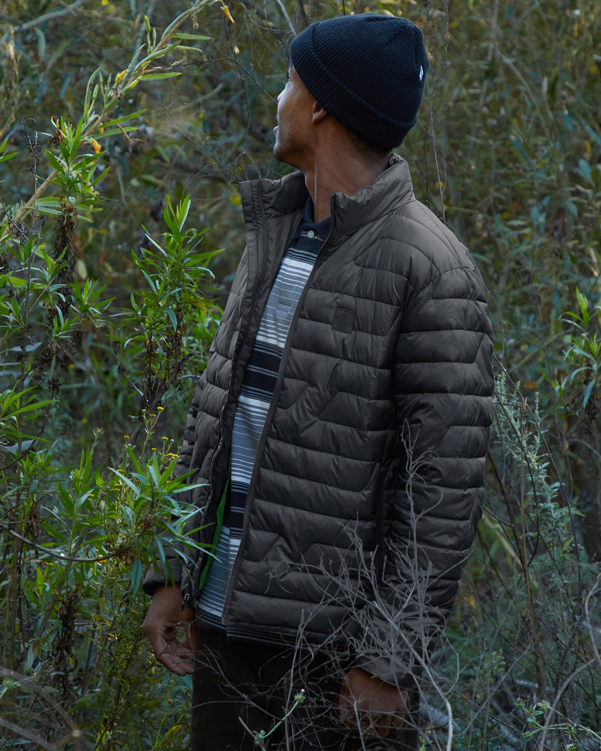 This lightweight, mock-neck jacket features a partially recycled polyester fill that traps warmth without weighing you down. With a mid-length fit, water-repellant finish, and zippered pockets, it's a versatile layer that's perfect for blustery days. Elastic at the waist and cuffs offers a secure feel while the "V" patch adds a touch of signature style. Featured here in black.