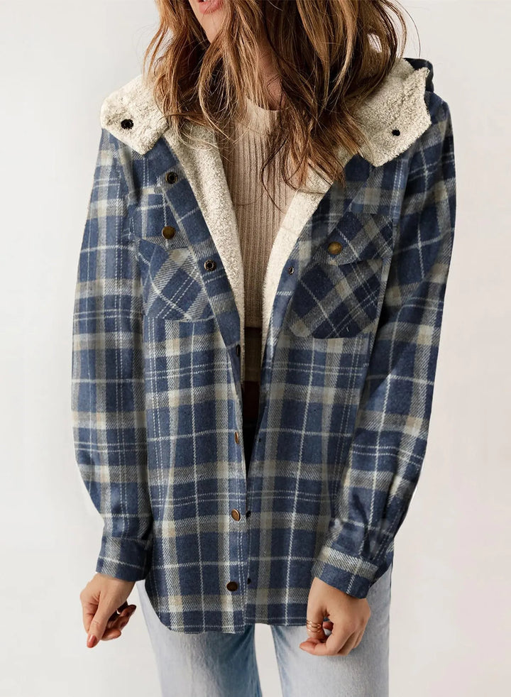 Fall in love with plaid! This fleece-lined hooded jacket is your new go-to for cozy autumn days. Pair it with your favorite jeans and boots for a look that’s both comfy and stylish.