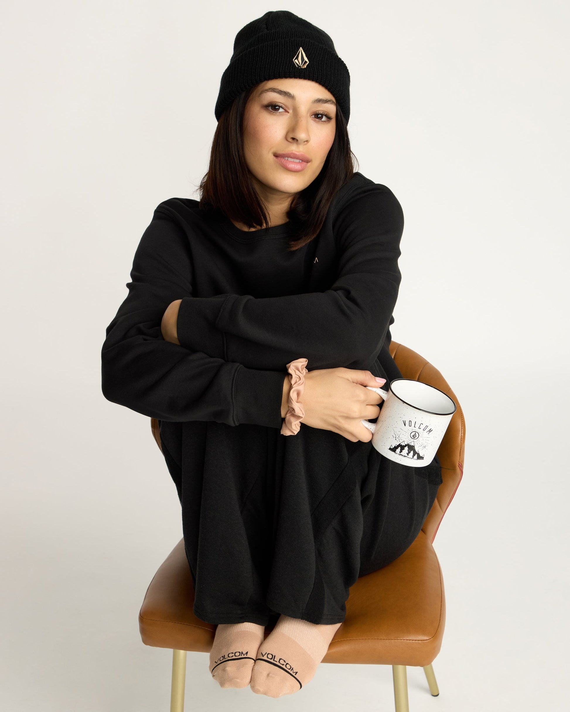 Upgrade your casual wardrobe in one fell swoop with "V"'s Frickin Classic Gift Set. This all-in-one package delivers comfort and effortless style, featuring a cozy crew neck fleece, versatile short sleeve tee, trendy scrunchies, comfy crew socks, and a snug cuff beanie. It's the perfect way to refresh your look or surprise a fashion-forward friend. Featured here in black combo.