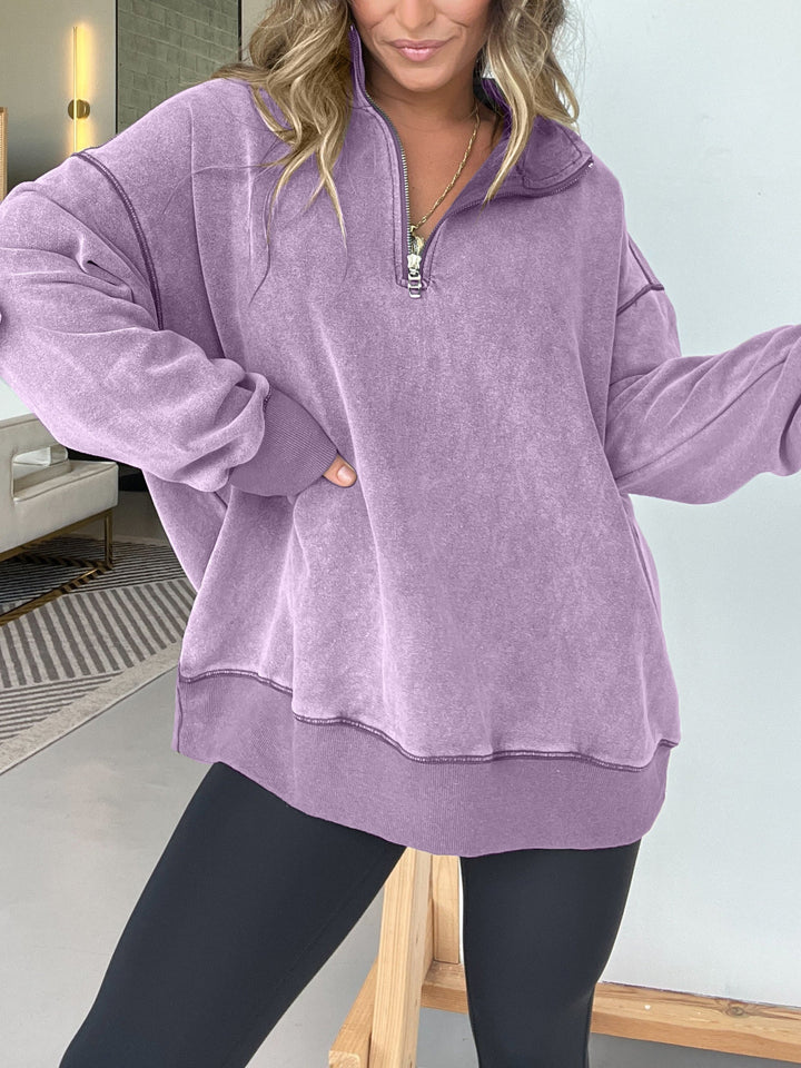 This exquisite Oversized Quarter Zip Vintage Pullover is the epitome of timeless style. Crafted with meticulous care, it showcases an oversized fit that exudes effortless elegance. The exposed seam detailing adds a touch of sophistication, making it a must-have for those seeking a polished and refined look. Perfect for any occasion, this pullover effortlessly combines comfort and fashion.
