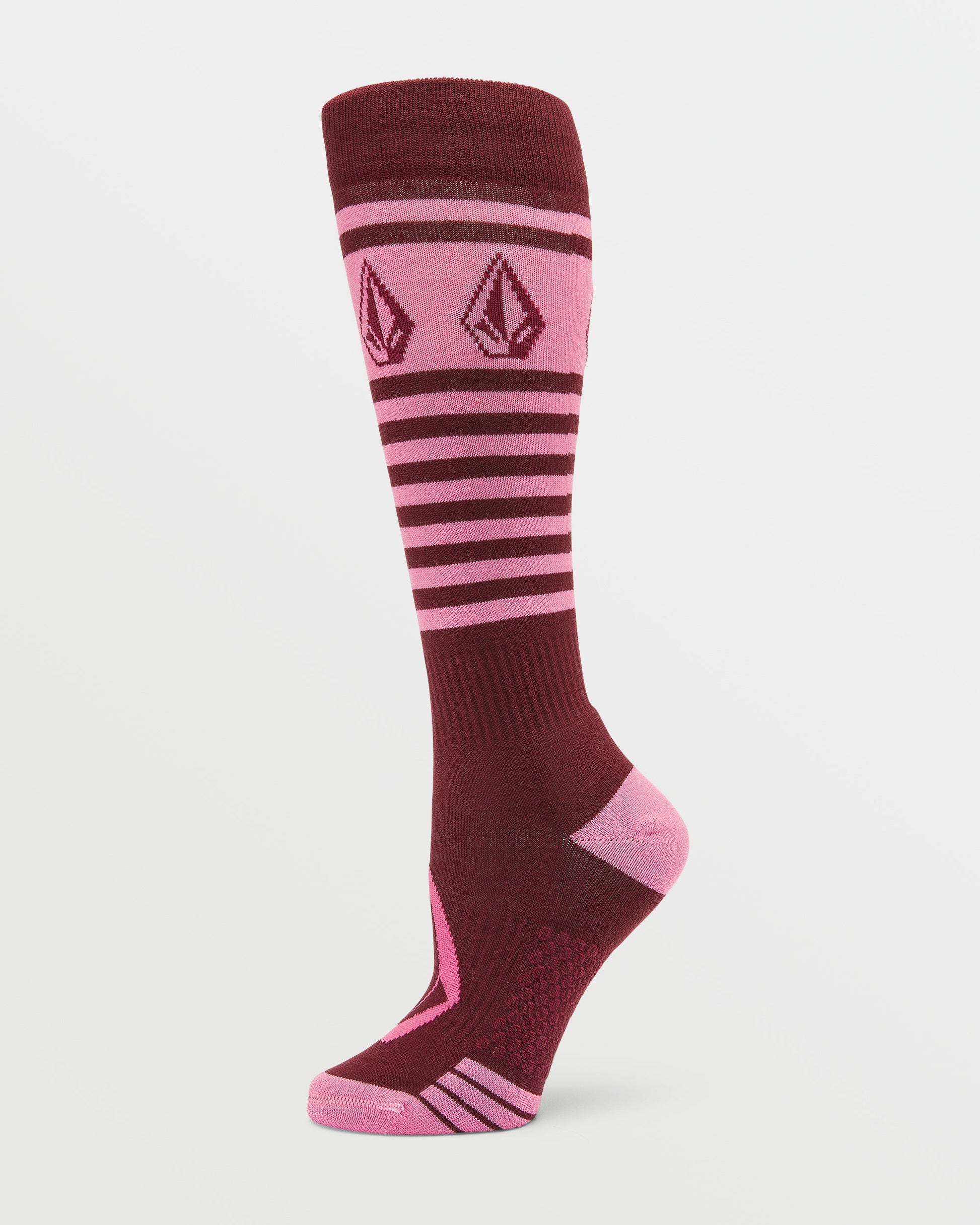 Shred the mountain in style with the Women's Striker Over-The-Calf Sock. Made of blended wool fabric to heat your feet, these medium-weight snow socks are performance-driven with innovative features like woven arch support, strategic cushioning, and an engineered air channel to ensure breathable comfort. Complete with a Stay-Up cuff to ensure they stay in place while you ride.