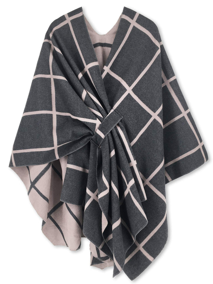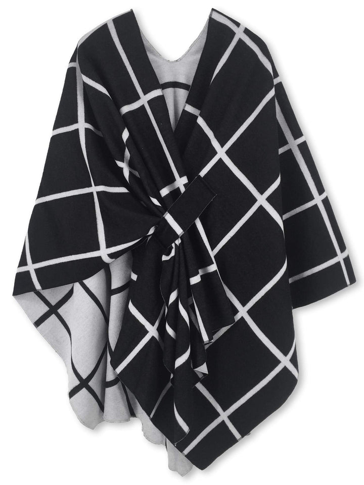 Women's Windowpane Reversible Capes Cardigan Shawls (Buy 2 Free Shipping)